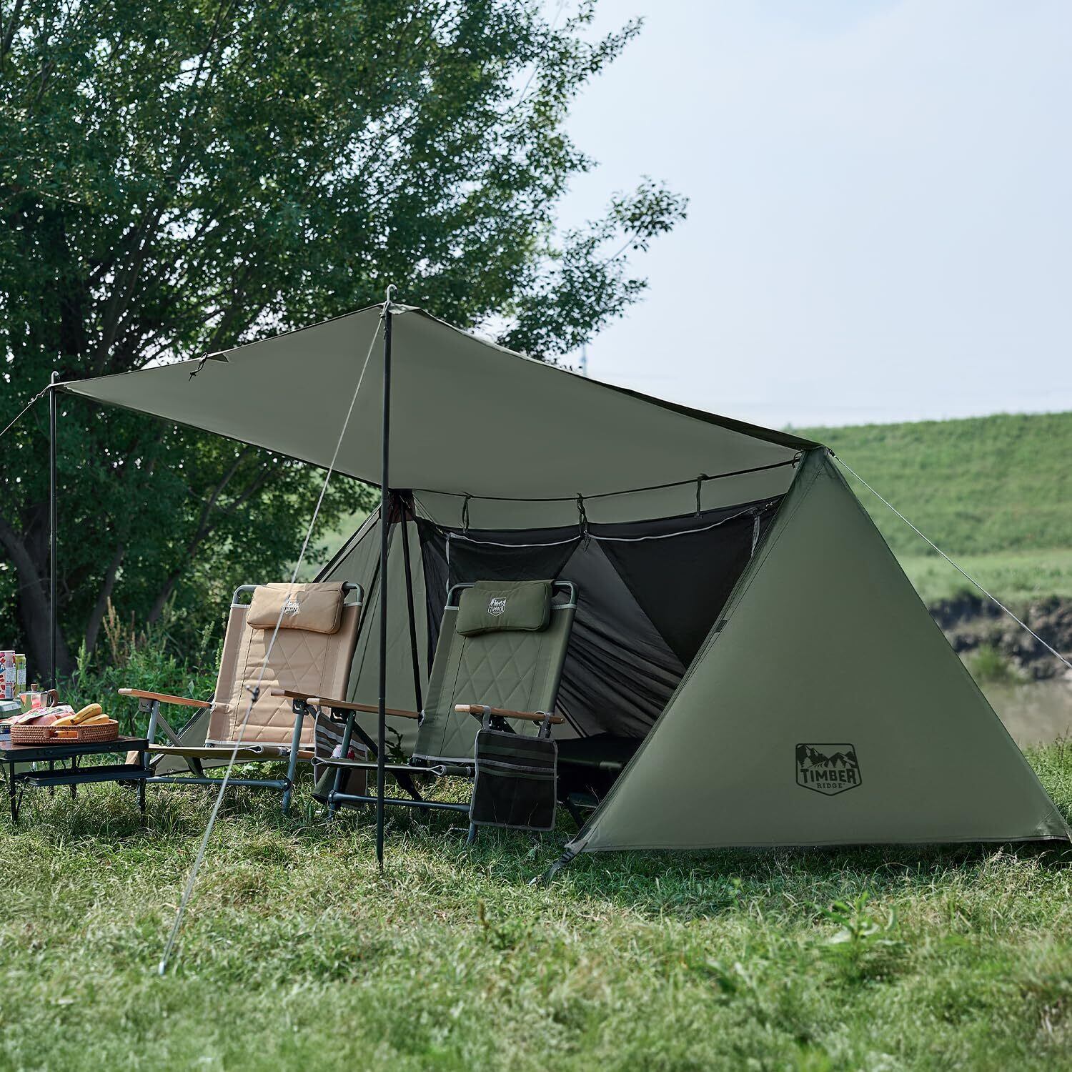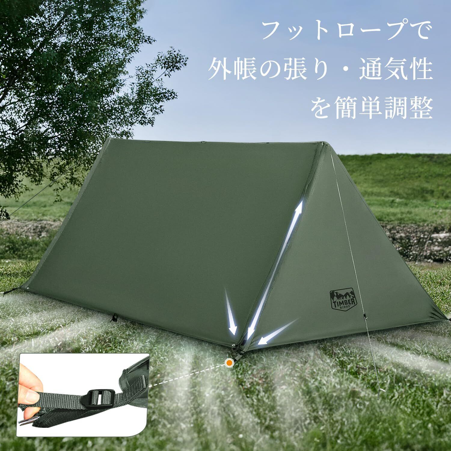 TIMBER RIDGE パップテント 1人用 軍幕テント 簡単設営 UVカット加工 コンパクト収納 耐水圧 防風 防水 通気 日よけ キャンプ用 アウトドア