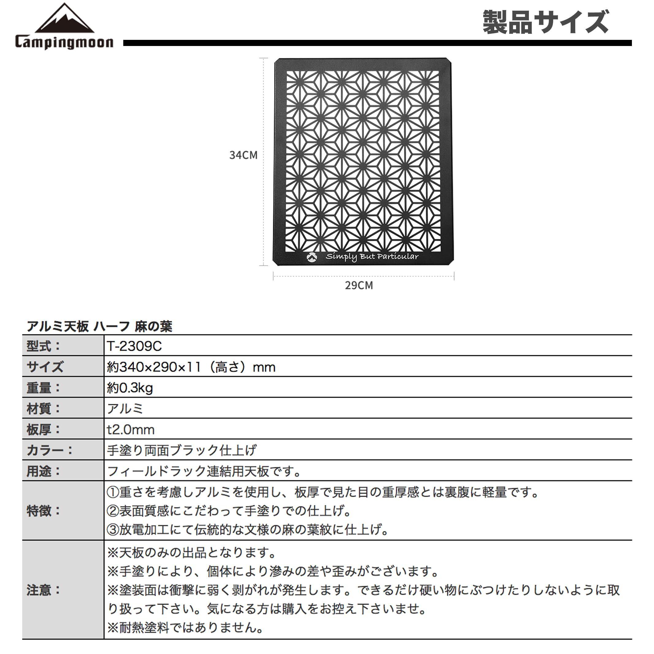 キャンピングムーン(CAMPING MOON) フィールドラック 連結用 ハーフ 天板 アルミ天板 麻の葉 ブラック 黒ギア T-2309-C