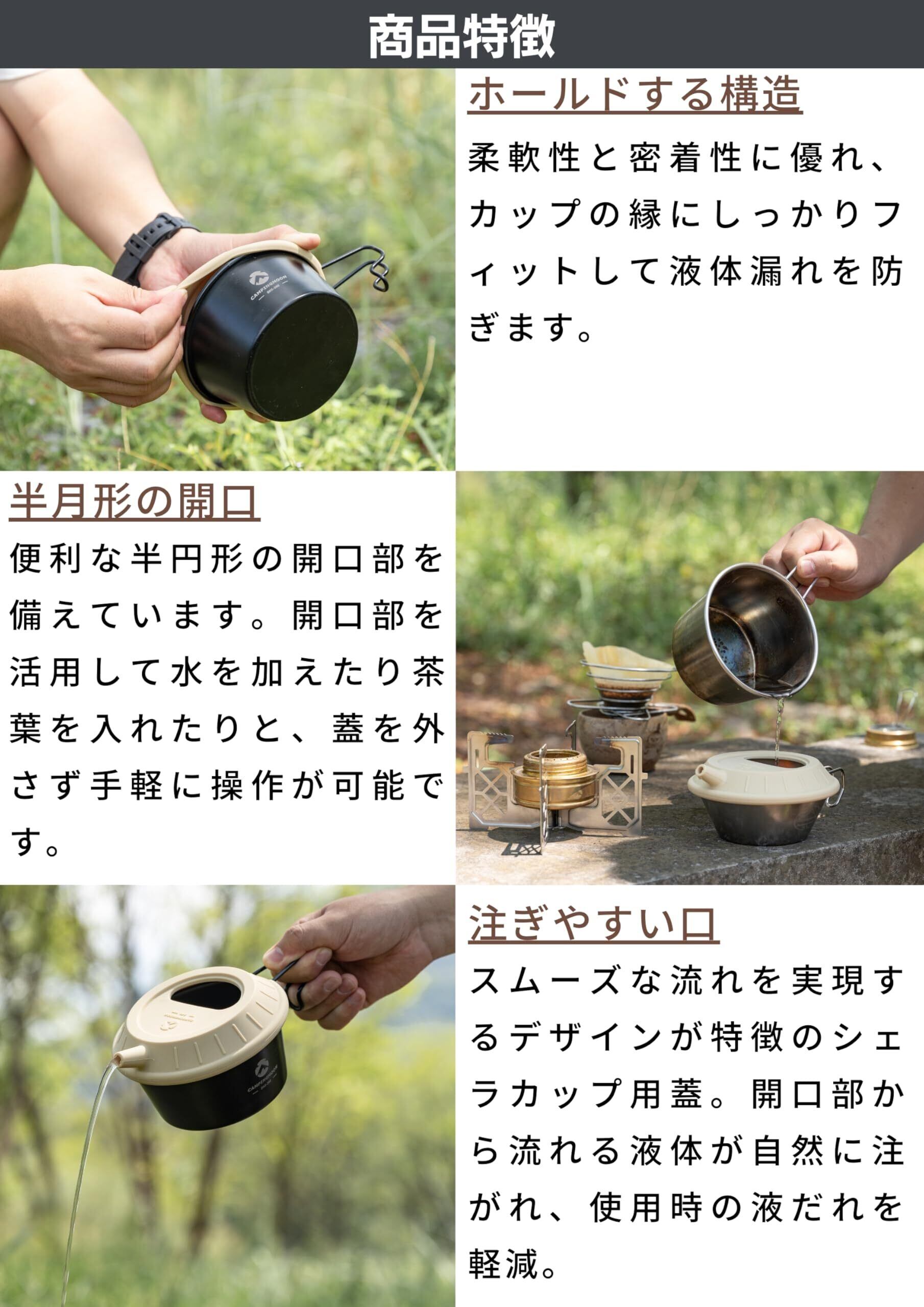 特徴:シェラカップをケトルに変身させるユニークな蓋