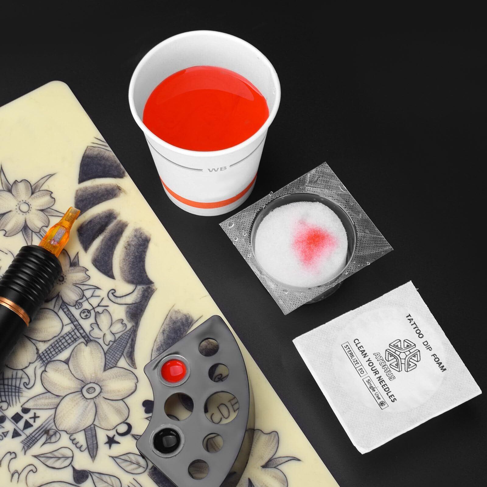 3.タトゥー針を作業作業に入れると、スポンジはすぐに残留色を吸収できます