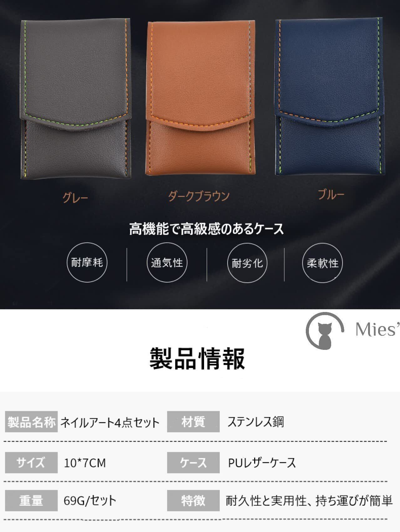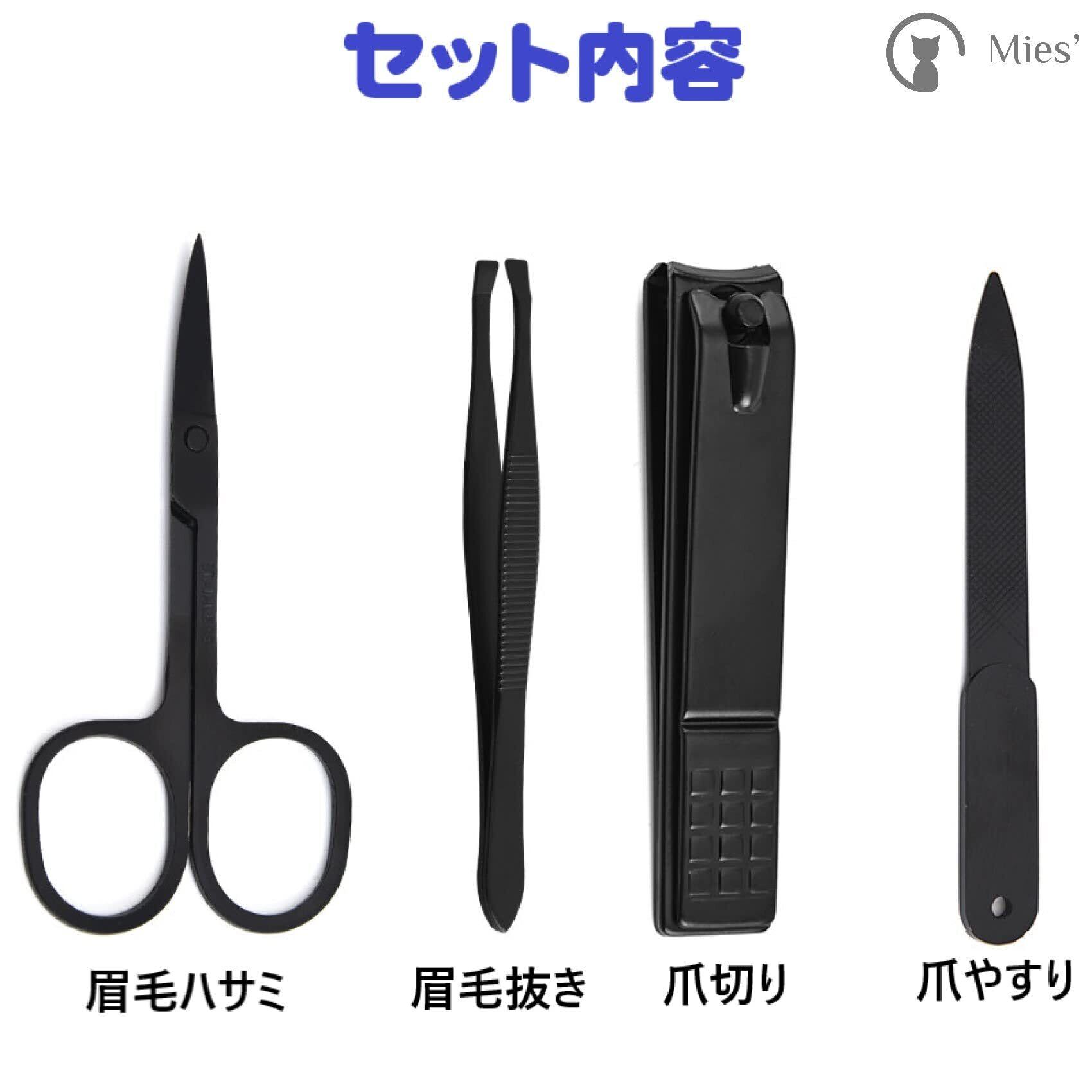 【商品内容】 眉毛はさみ×1、眉毛ピンセット×1、爪切り×1、爪やすり×1、PU皮革収納ケース