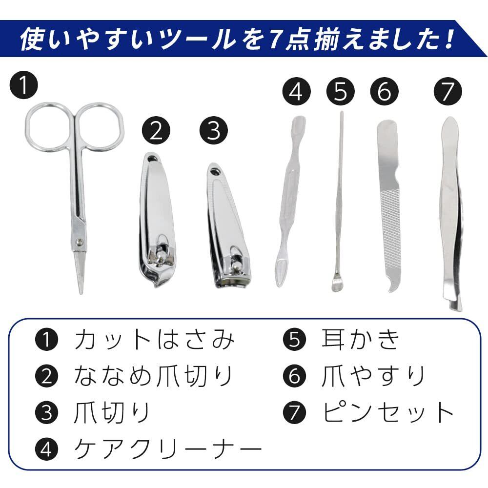 このエチケットセットは、爪切り・はさみ・ピンセット・耳かきなど、日常のケアに必要な7点をコンパクトなケースに収めた便利なセットです。