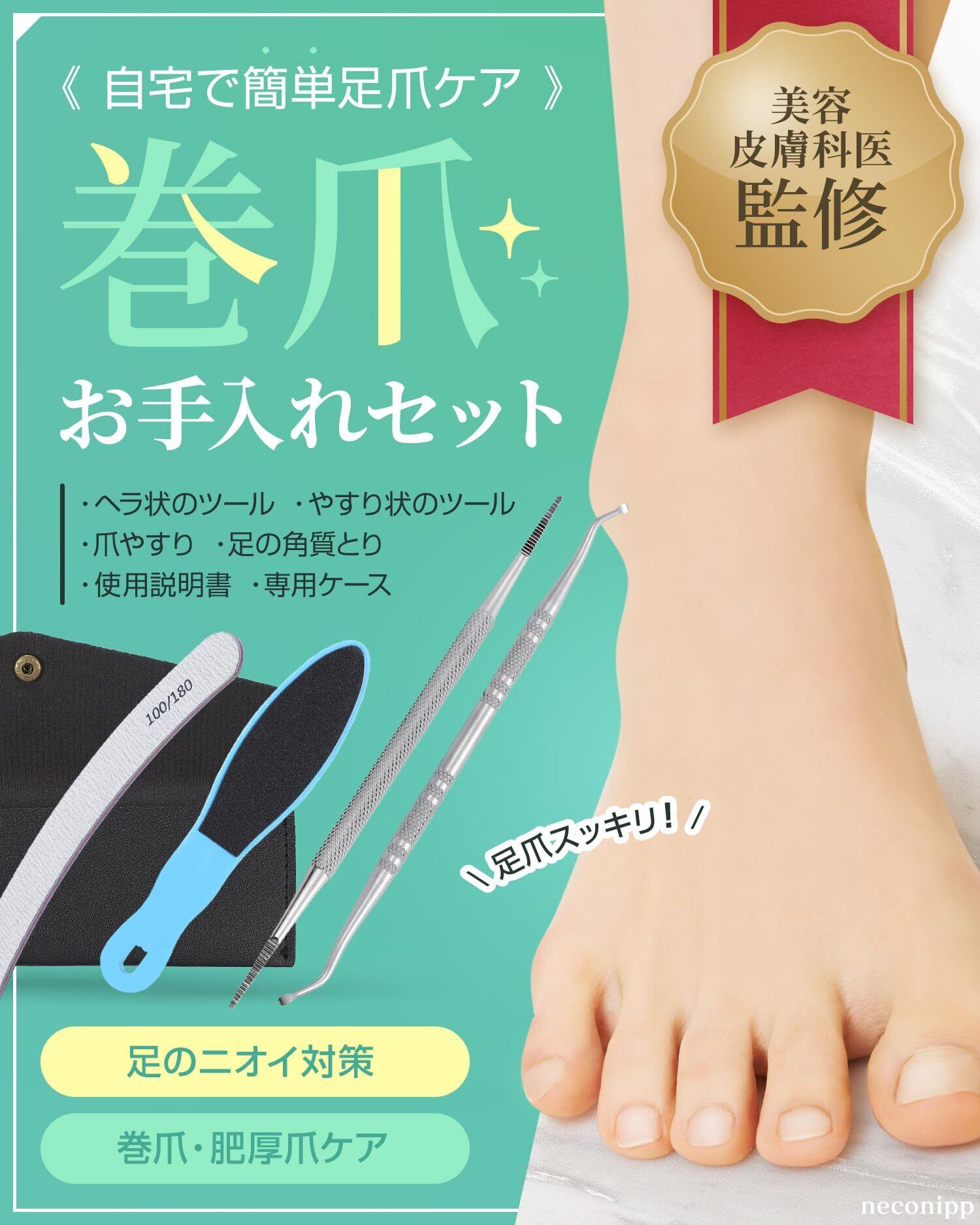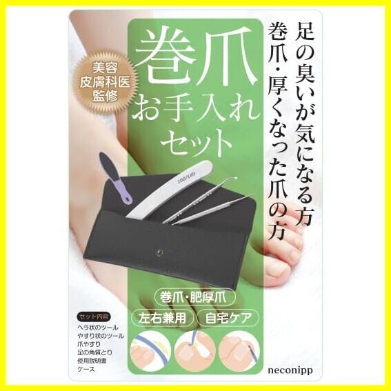 【 医師監修 | 雑誌掲載 】 巻き爪 爪やすり & 爪垢取り フットケア お手入れセット爪削り | 肥厚爪・厚くなった爪用|収納ケース付き 巻き爪対応お手入れキット