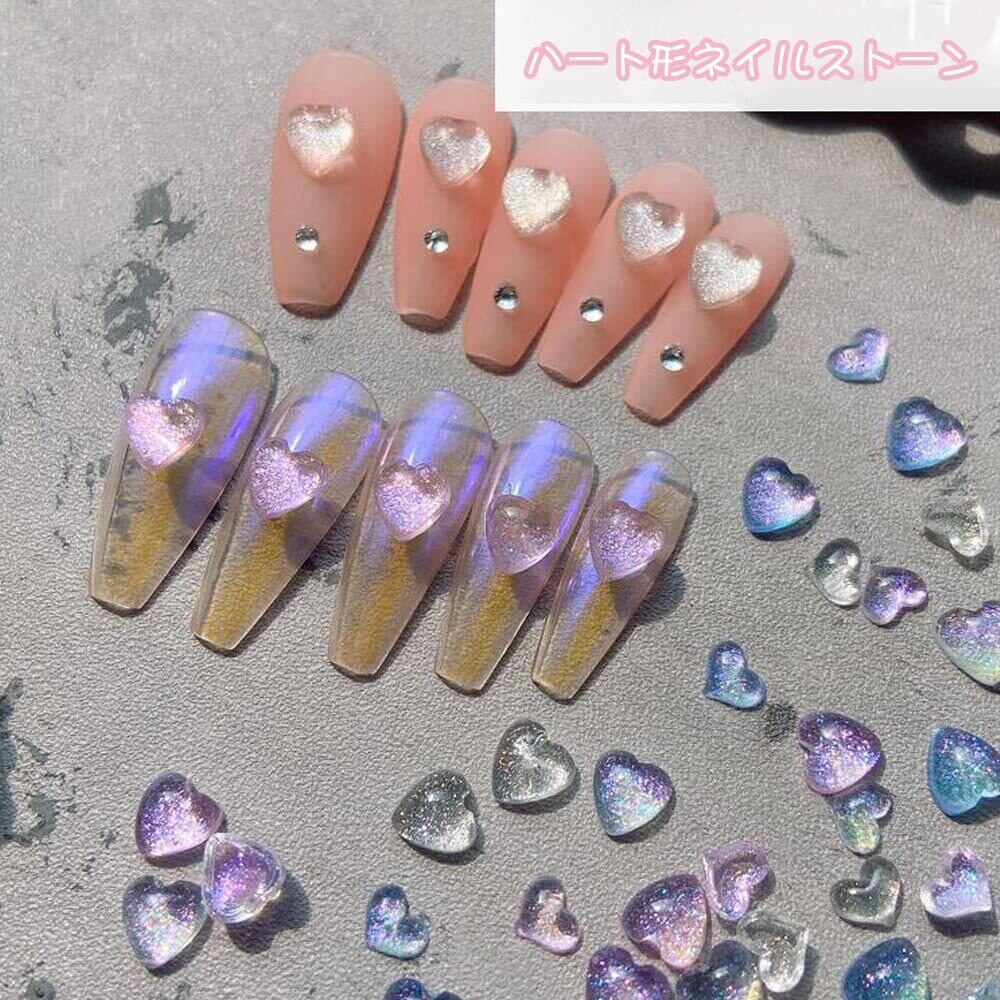 ネイルパーツ ネイルツール オーロラ 3d 立体 多色 ネイルストーン ハート型 レジン ネイル デコパーツ 5mm 6mm 約100個 (A)