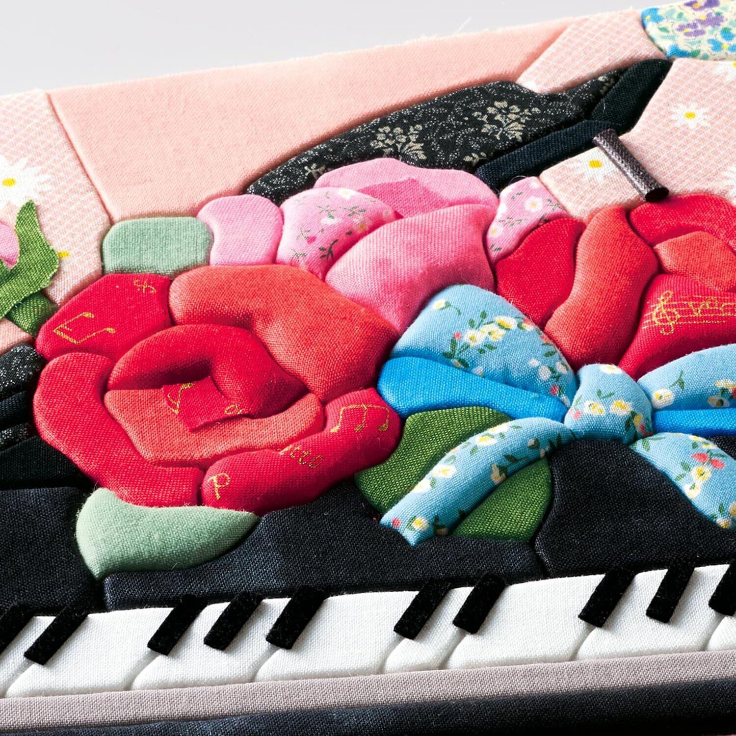 ミニピアノをバラとリボンで彩った可愛らしいフラワーアレンジメント