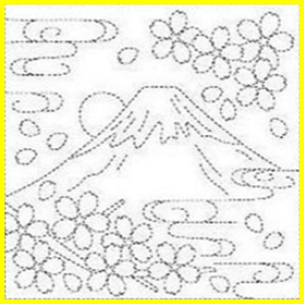 オリムパス製絲 刺し子 キット 花ふきん 富士山 富士と桜 (白) H-1012