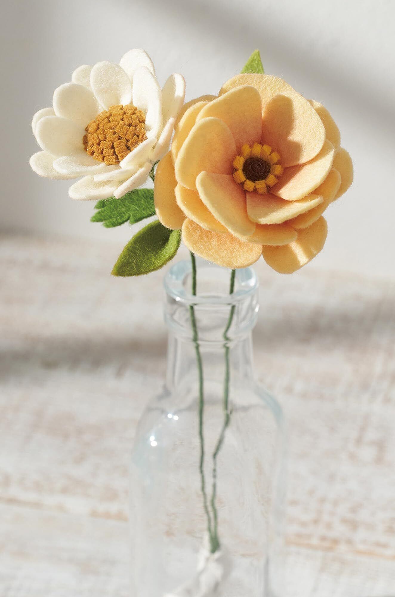 サンフェルト ピュアウール100でつくる インテリアフェルトフラワーキット デイジー&バタフライラナンキュラス LO-4
