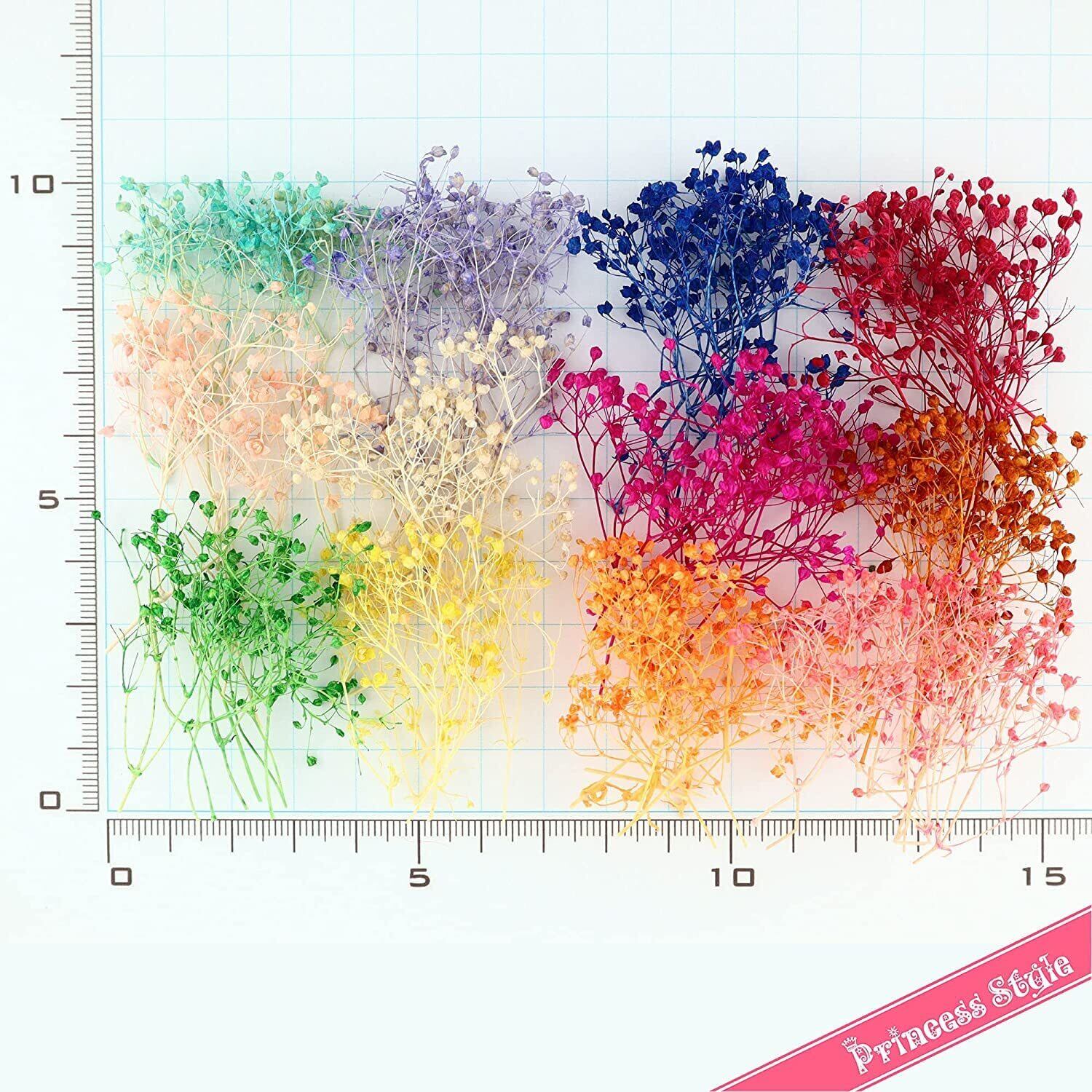Princess-style ミニ かすみ草 ドライフラワー レジン アクセサリーパーツ (12色ちょっとずつ/セット)