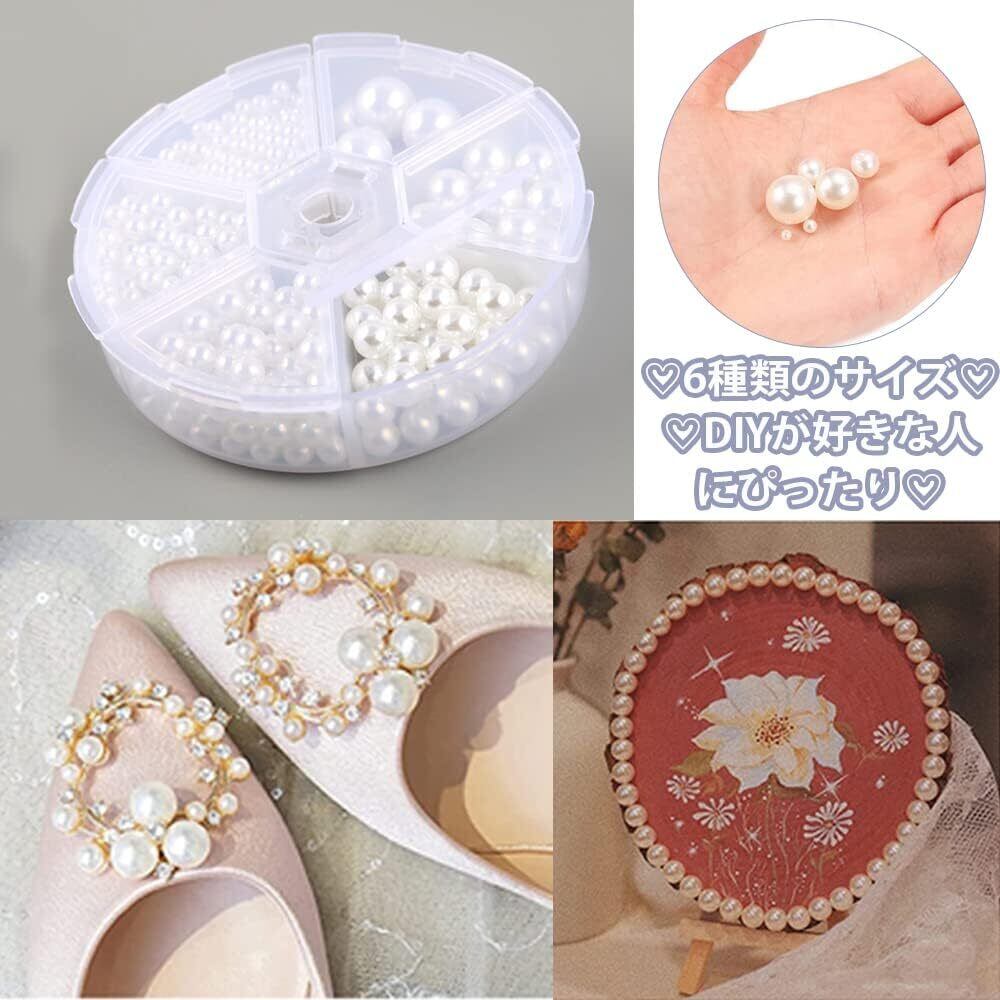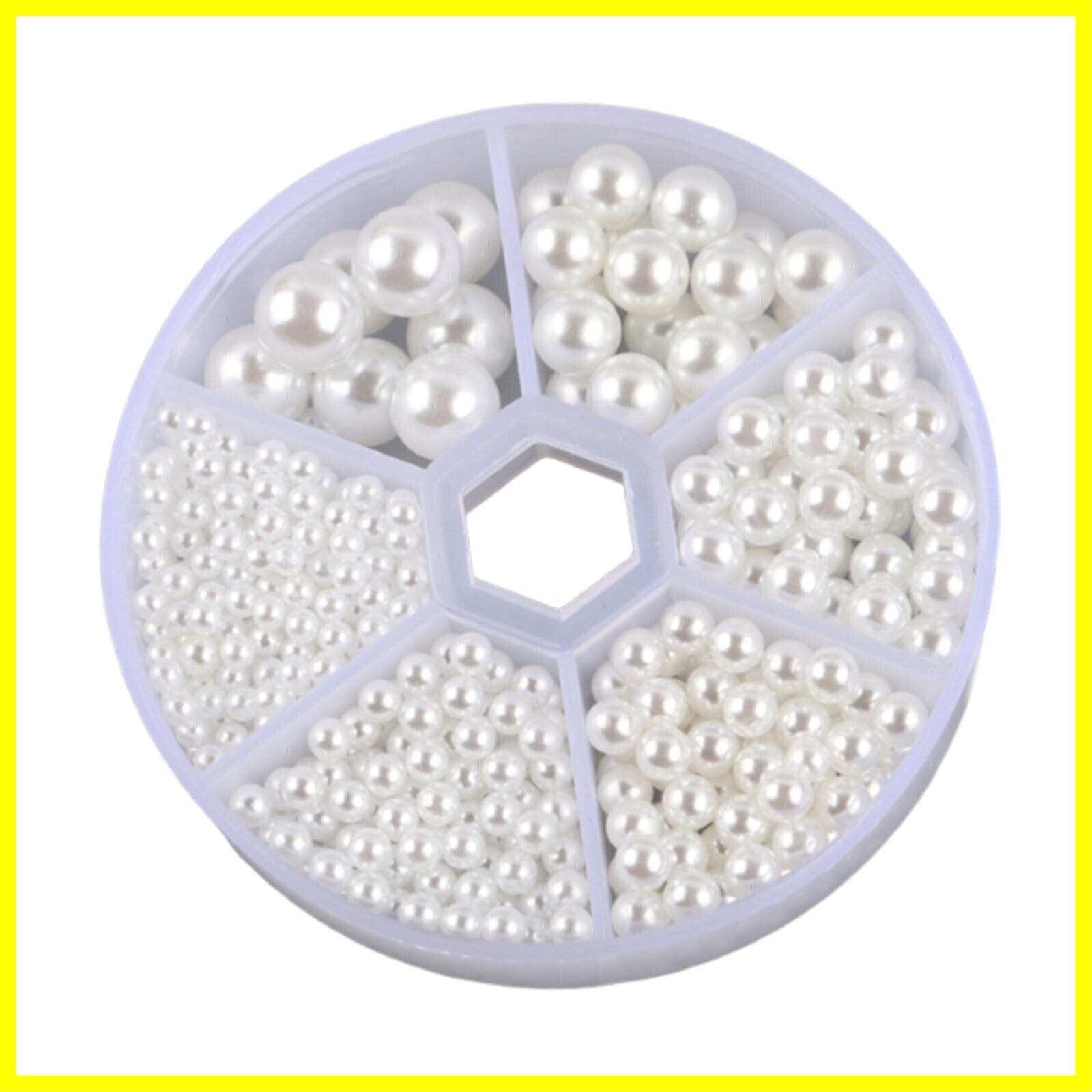 サムコス 樹脂パール パールビーズ 約700粒セット ラウンド 丸玉 穴なし 小さな 手芸用品 DIY 材料 縫製用 手作り 工芸品の装飾 ジュエリー用 ハンドメード ネックレス イヤリング ビーズセット 6サイズ (白)
