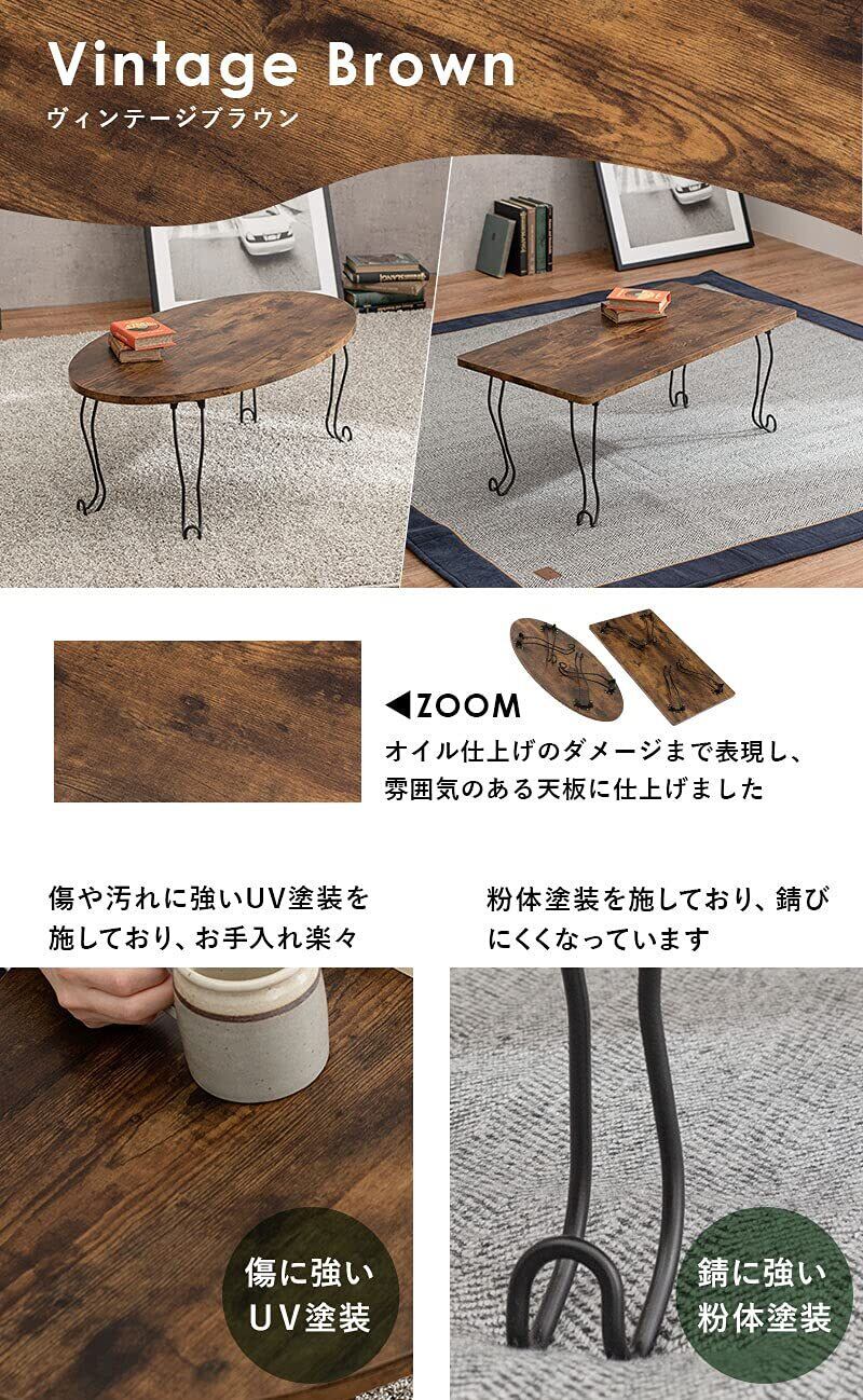 古木調の天板に猫脚を合わせた、シックな可愛さのある折りたたみテーブル。〈br〉コンパクトなので一人暮らしなどのワンルームや狭いお部屋、子供部屋などにおすすめ。〈br〉折りたたむとソファ下やちょっとした隙間に収納できるので、来客時のサブテーブルやリモートワーク、リモート授業専用のテーブルとしても活躍します。