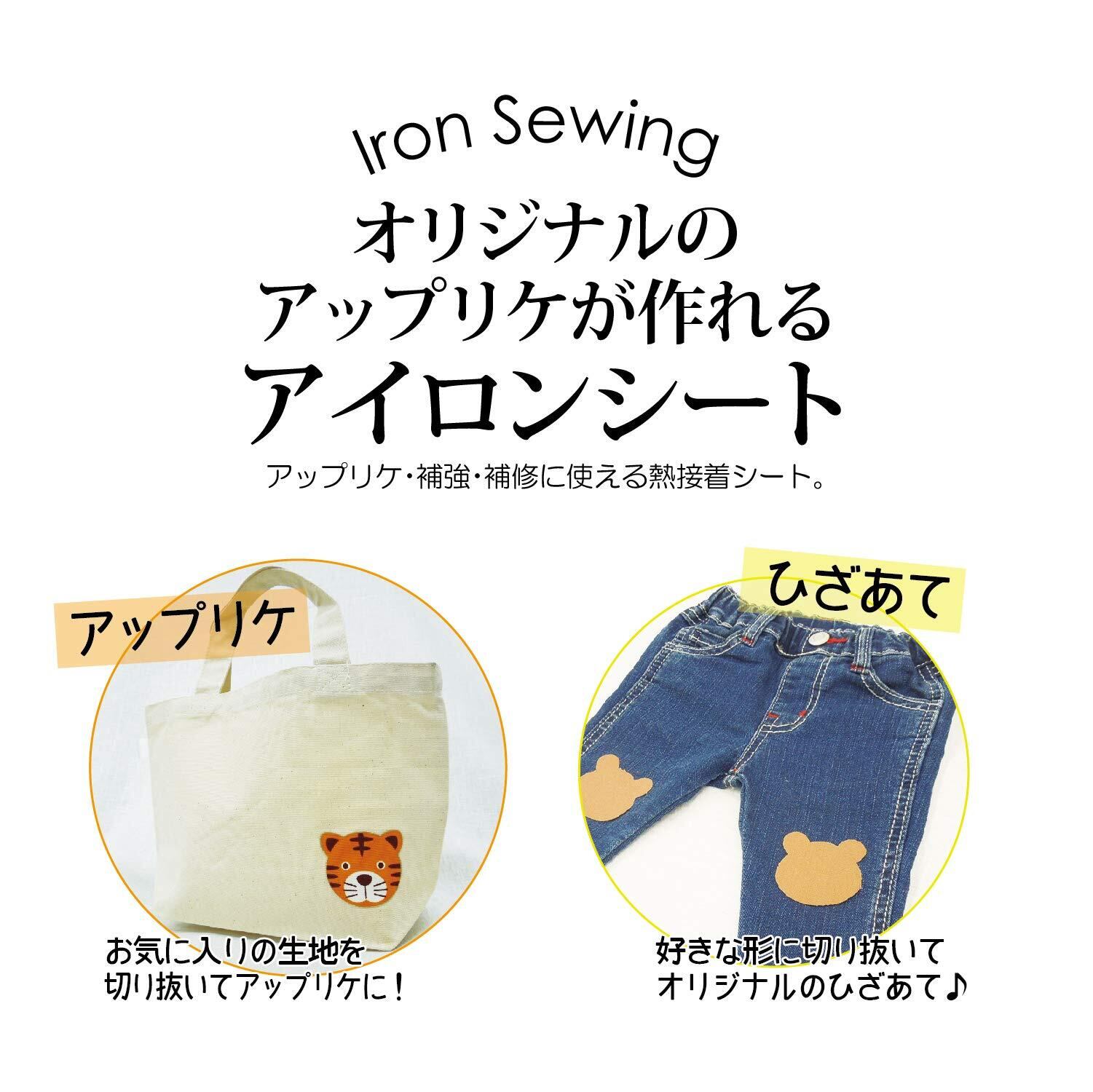 オリジナルのアップリケや補強・補修に使える熱接着シート。洗濯・ドライクリーニングOK。