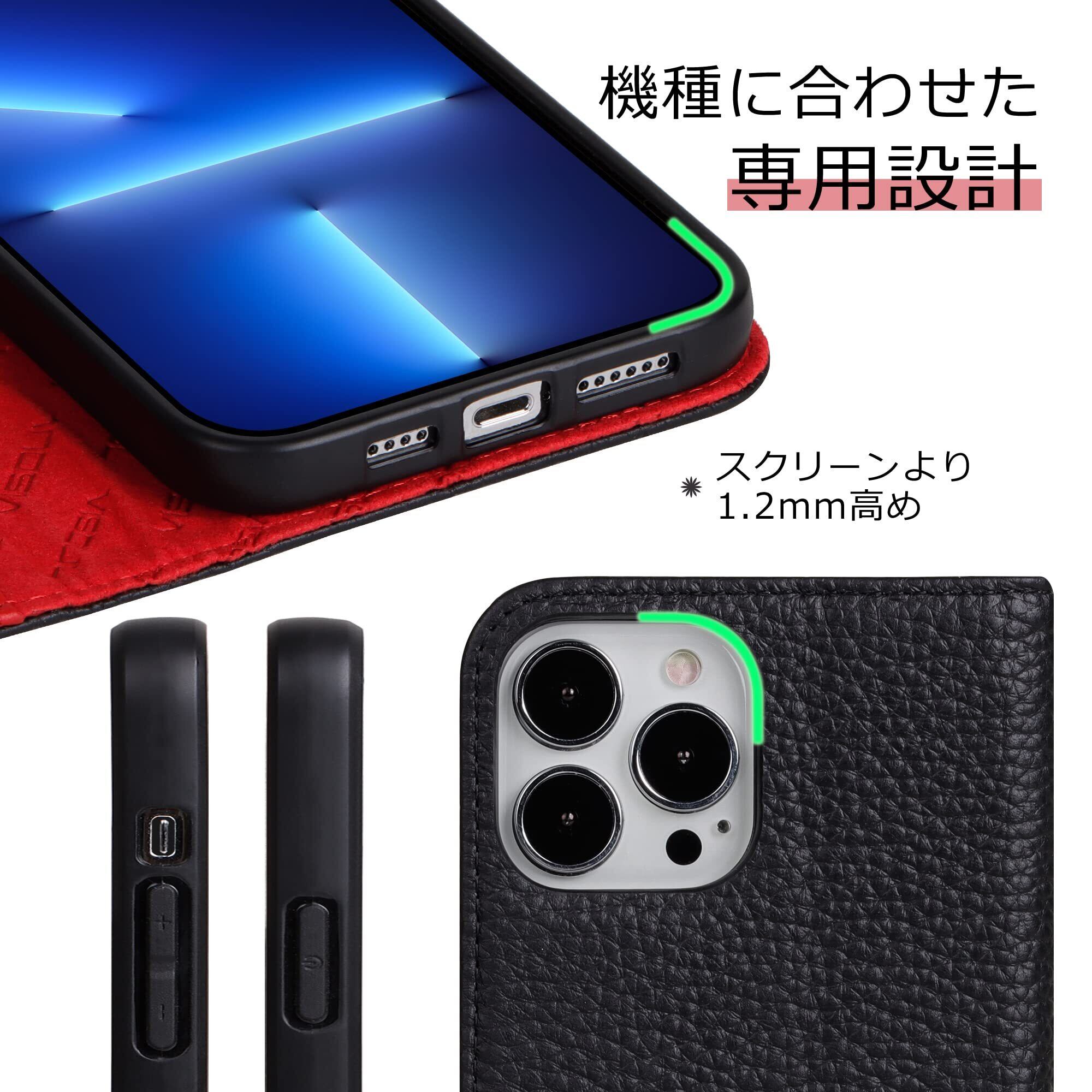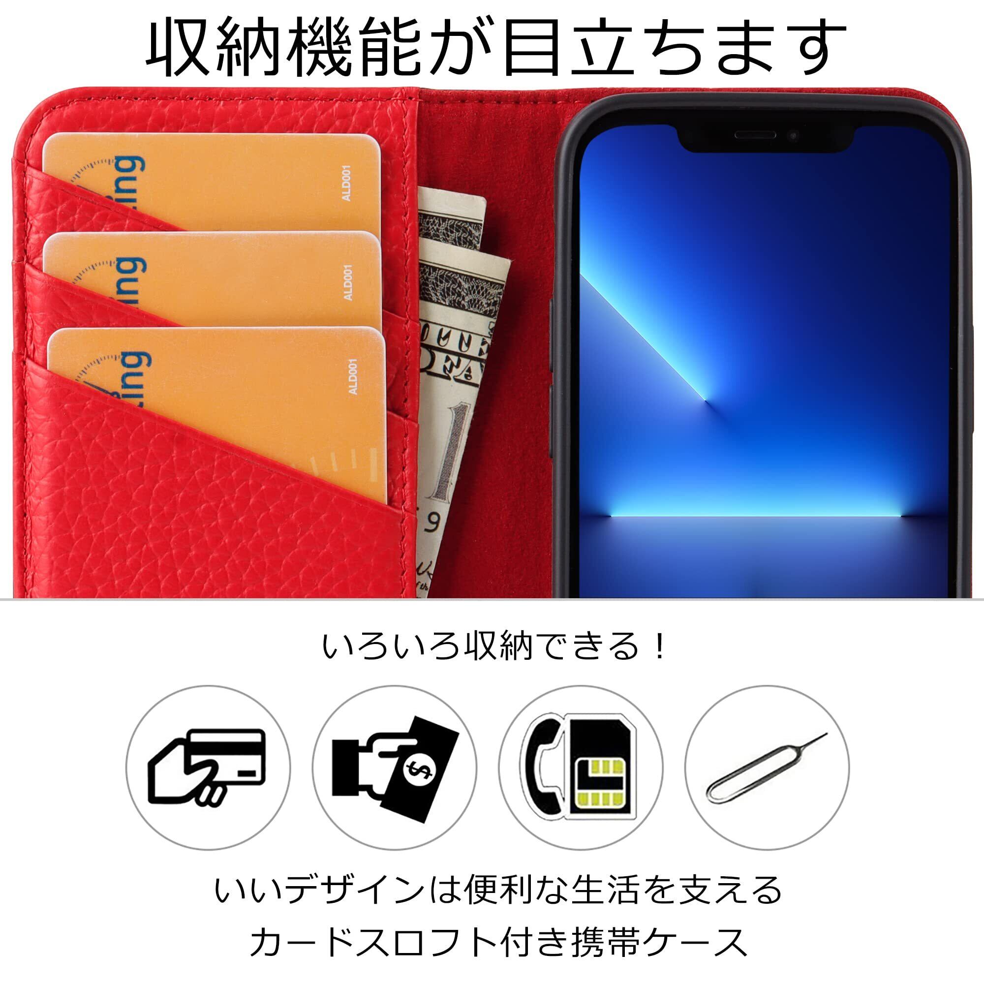 VISOUL iPhone 13 Pro ケース アイフォン13 プロケース 手帳型 本革 レザー スマホケース カード収納 携帯ケース 全面保護 マグネット 横置きスタンド機能付き iPhone 13 Pro ケース 対応 6.1インチ シュリンクレザー iphone 13 Pro レッド