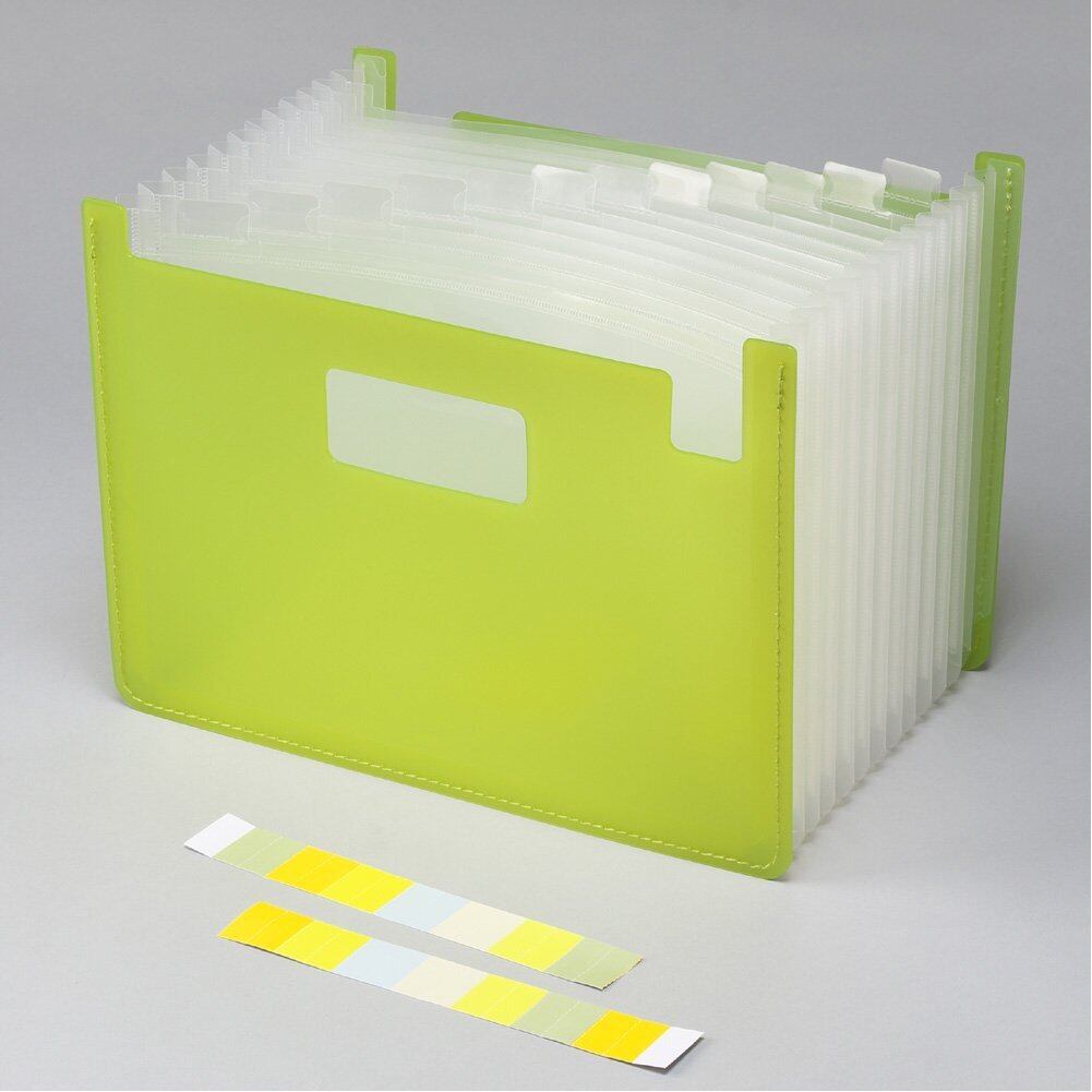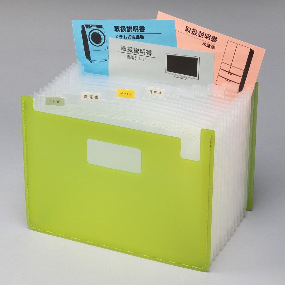 書類のボリュームによってポケットが伸び縮みする分類に便利なアコーディオン式。