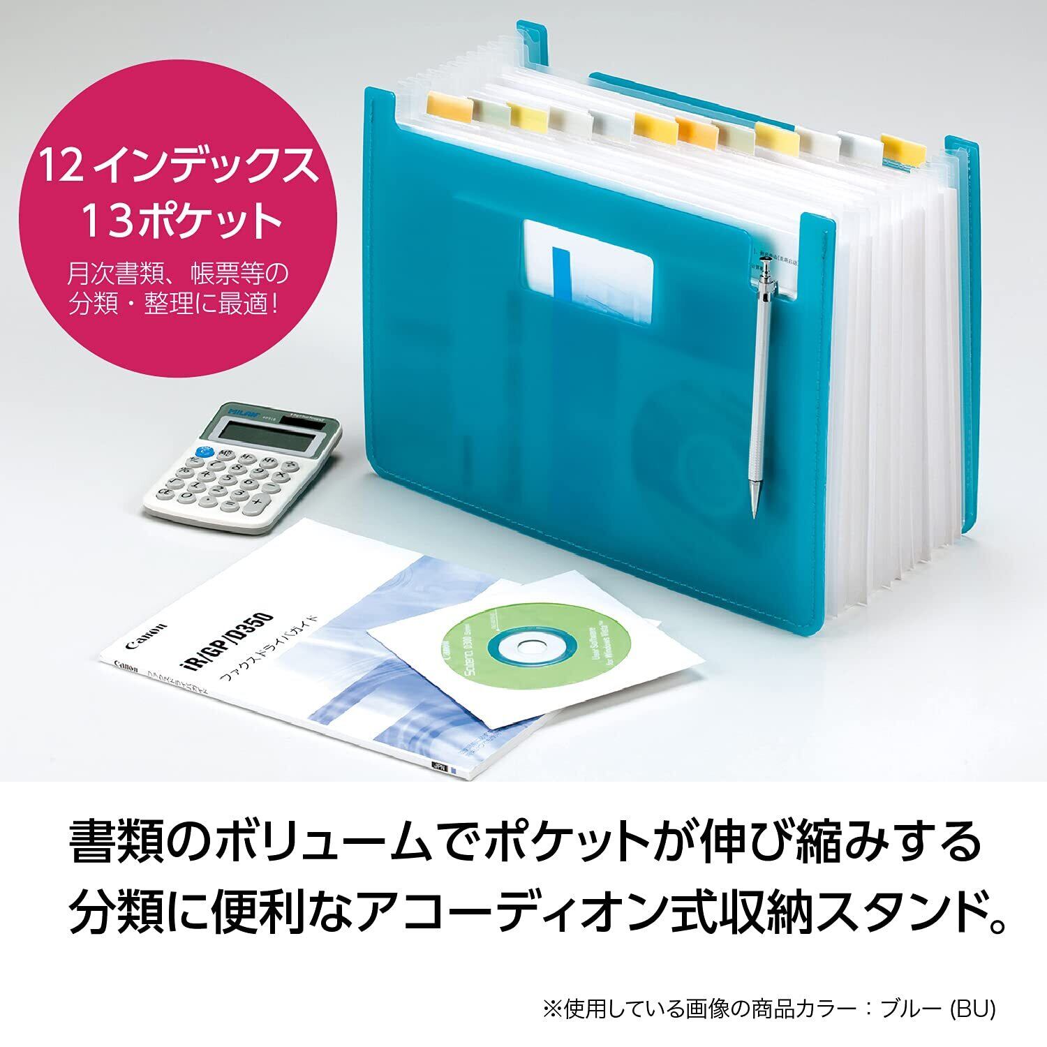 書類のボリュームによってポケットが伸び縮みする分類に便利なアコーディオン式の収納スタンド。