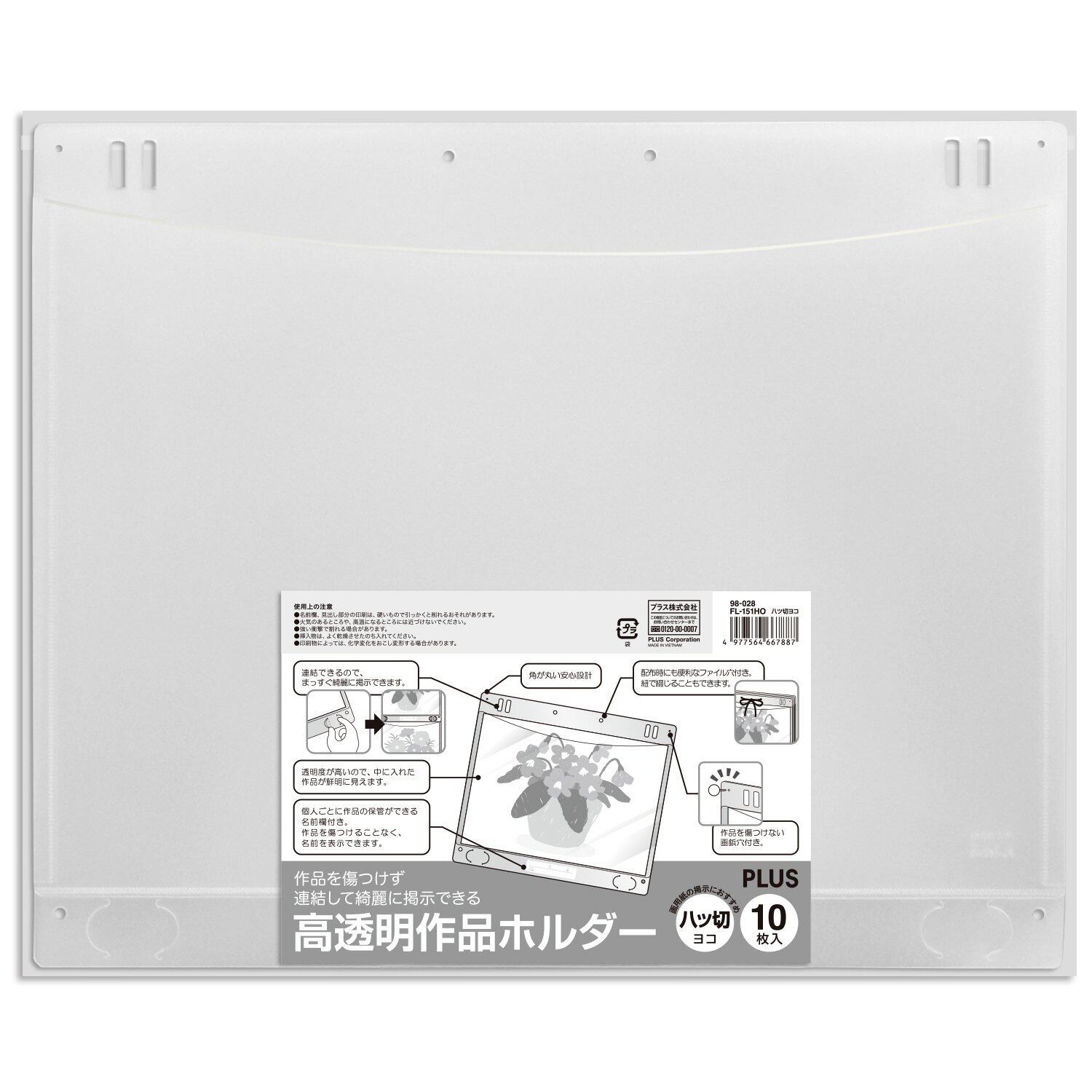 プラス 掲示用ポケット 作品ホルダー 八ツ切 画用紙サイズ ヨコ 10枚入 98-028