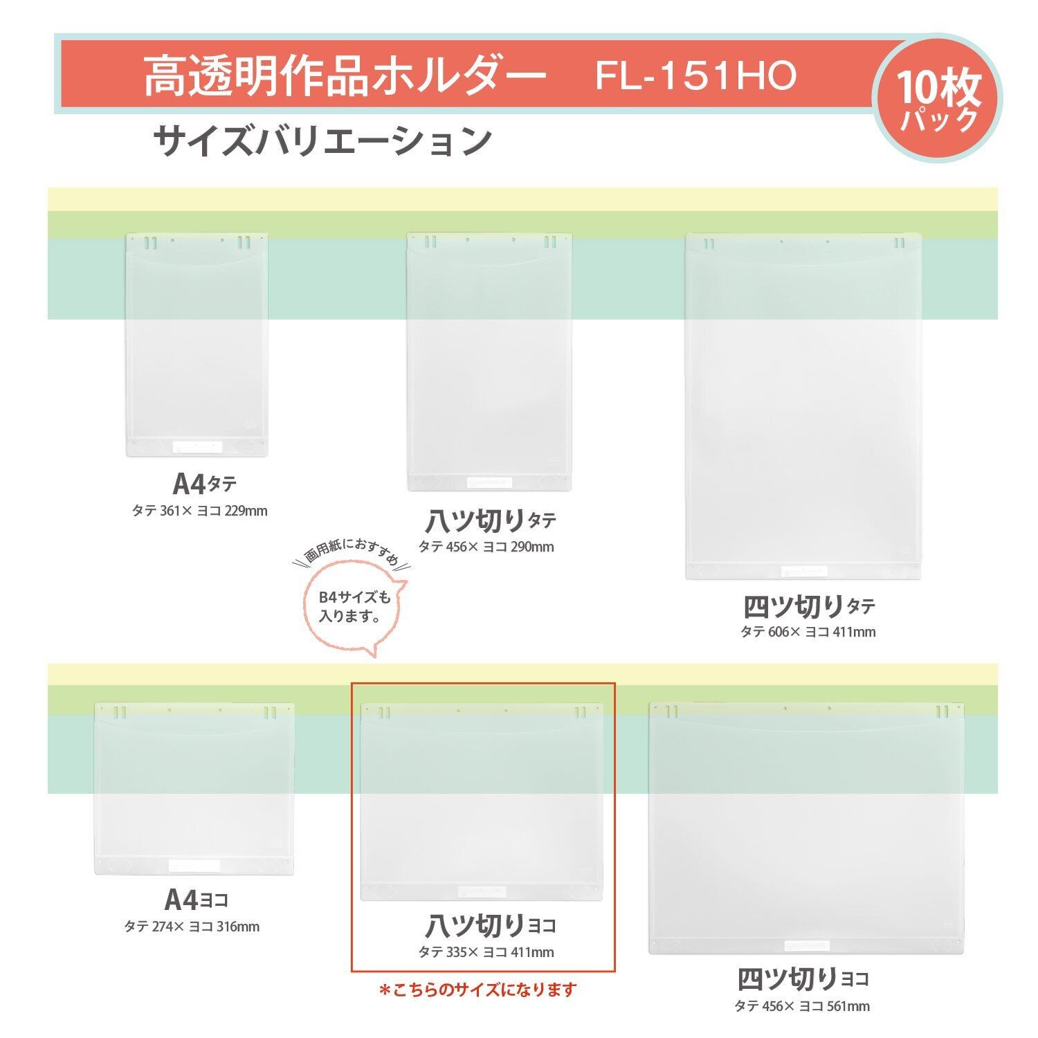 規格 : 八ツ切りヨコ 【八ツ切りサイズ 横型 (271×392mm) が入る大きさ (B4のひとまわり大きいサイズ) 】