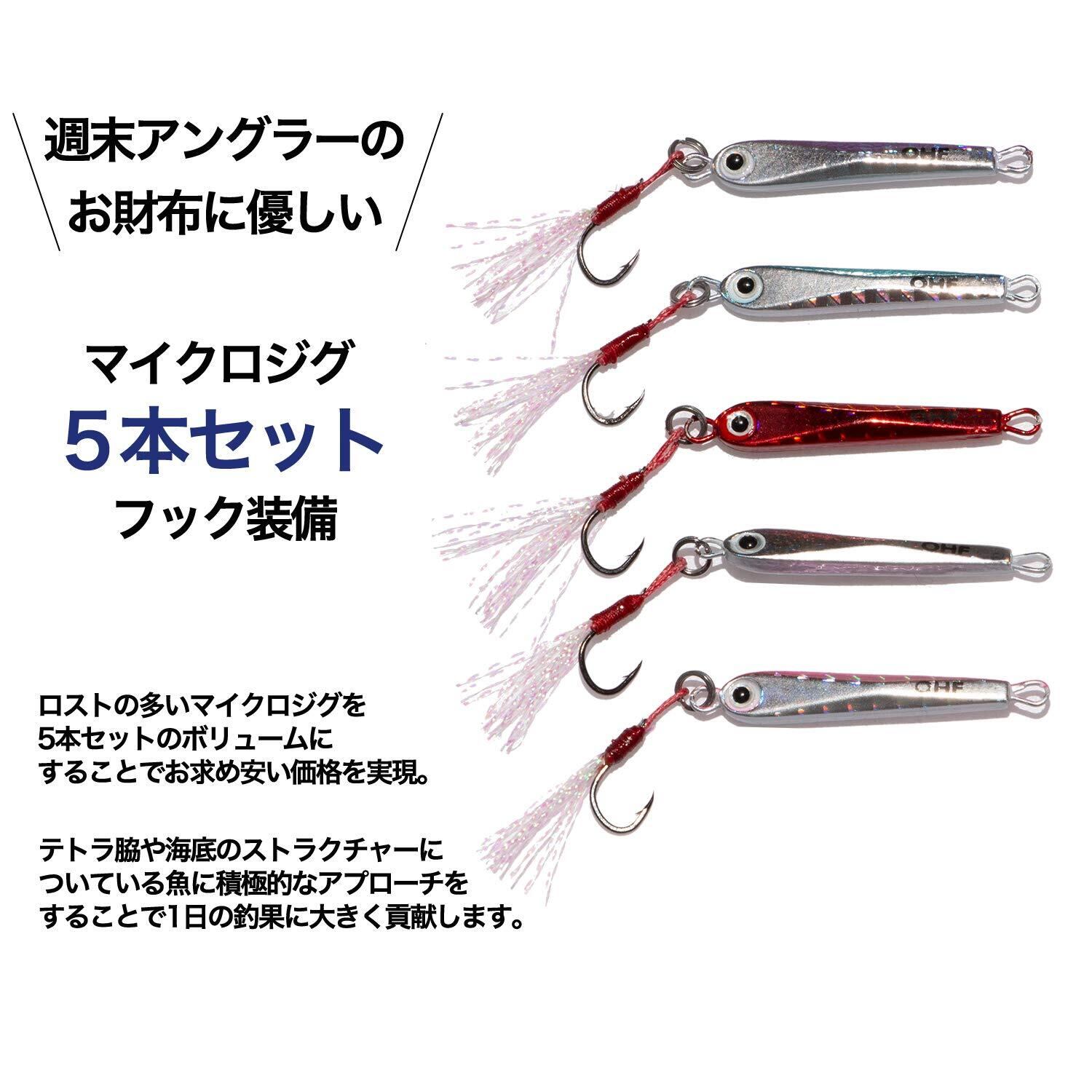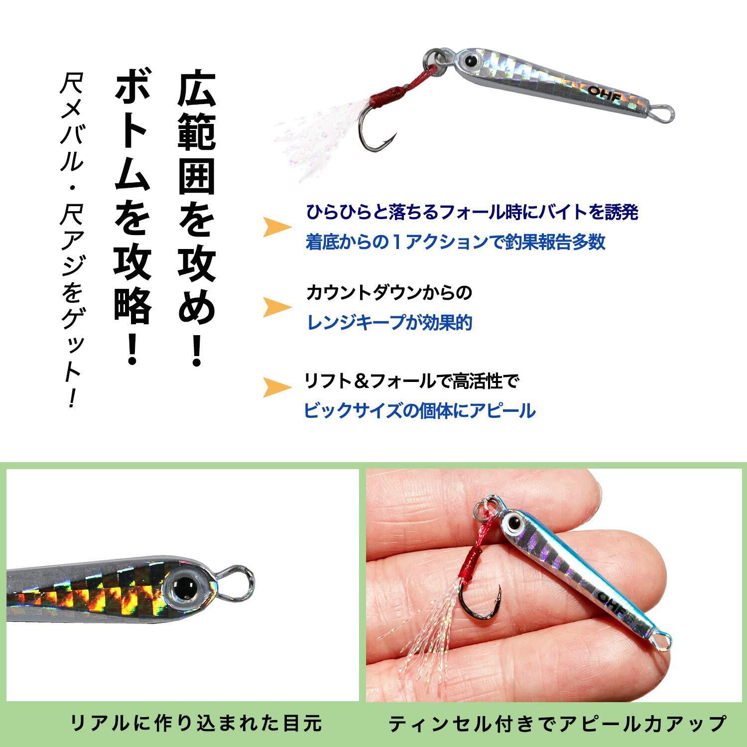 OHF ルアーセット メタルジグ アジング セット 4g 5個セット / 5g 5個セット アシストフック ティンセル付き ケース付き
