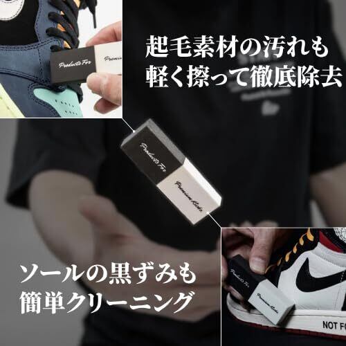 ちょっとした黒ずみや汚れ消しに便利なスニーカー専用イレイサー。 起毛素材に対応する研磨剤入り”Black Eraser”と、ゴムの力で汚れを吸着させながら取る”White Eraser”を合体。スニーカーを構成するほぼ全ての素材にこれ1本で対応。