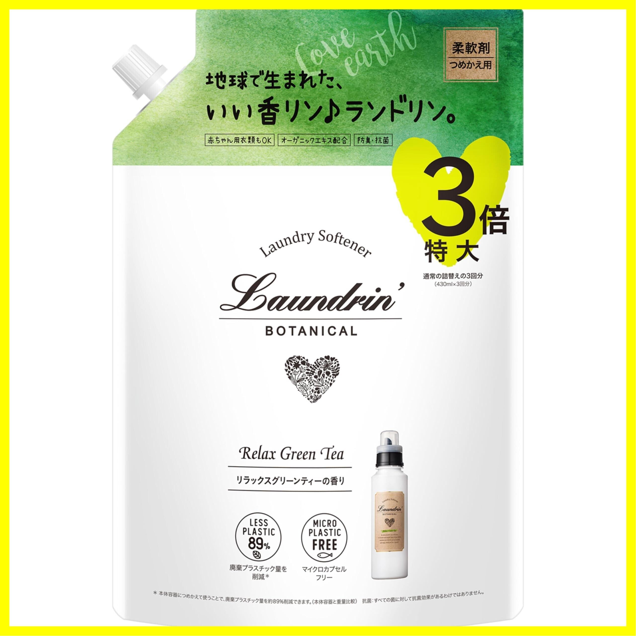 ランドリン ボタニカル 液体 柔軟剤 特大容量 リラックスグリーンティー 詰め替え 3倍サイズ 1290ml オーガニック
