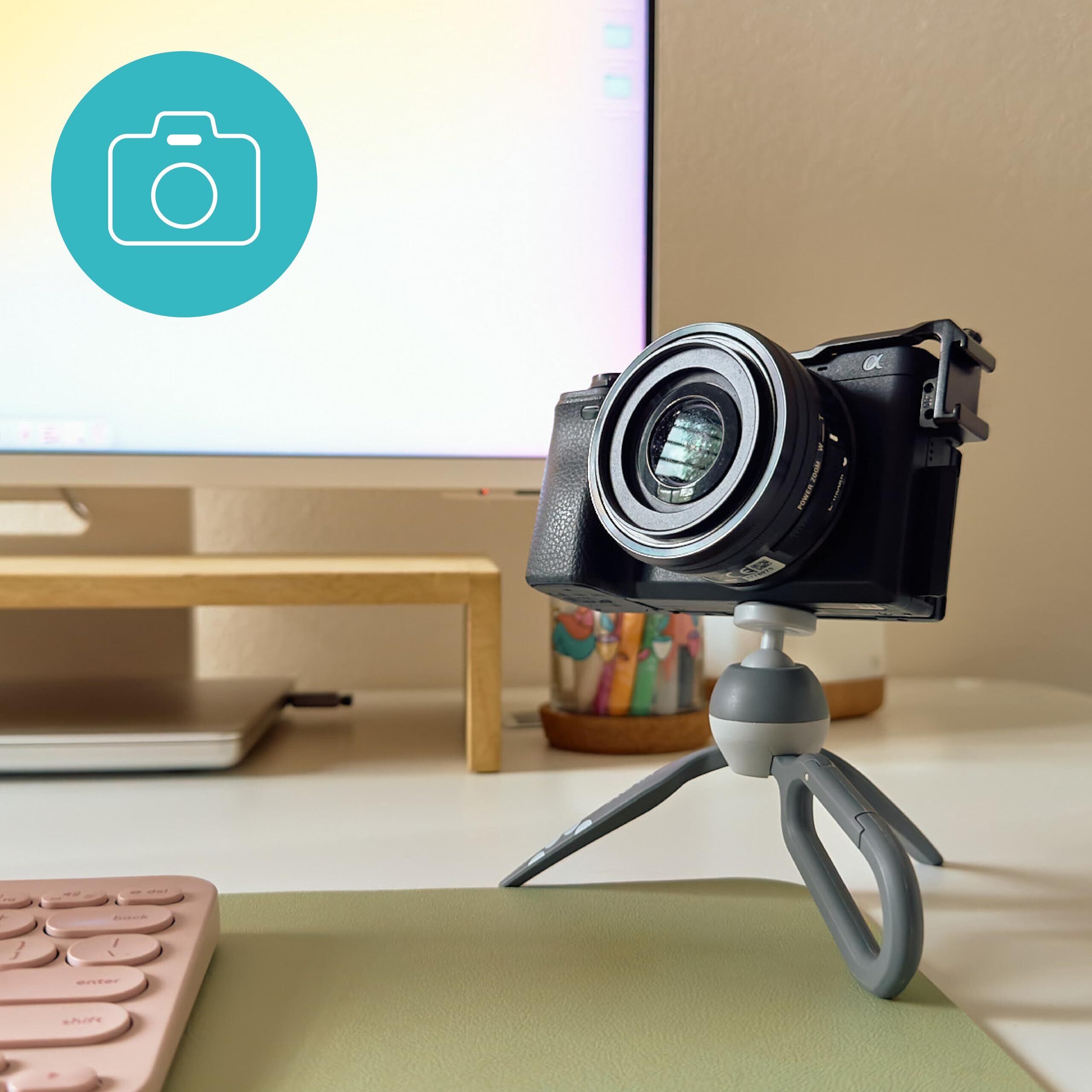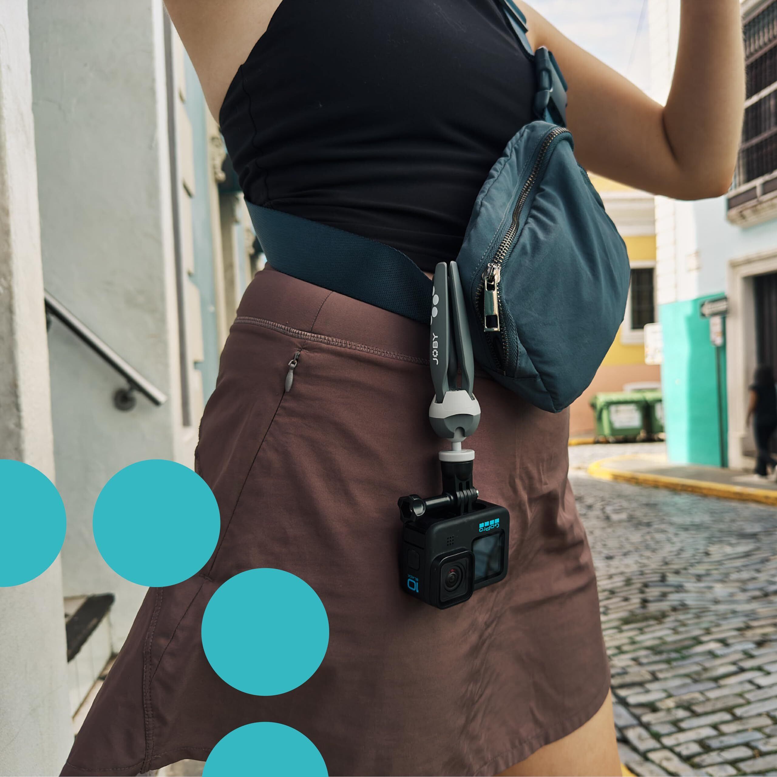 GoPro シリーズをはじめとするアクションカメラを固定できるアダプターが付属しているだけでなく、1/4"ネジを介してコンパクトカメラやビデオライト、マイクなどの三脚としても使えます。