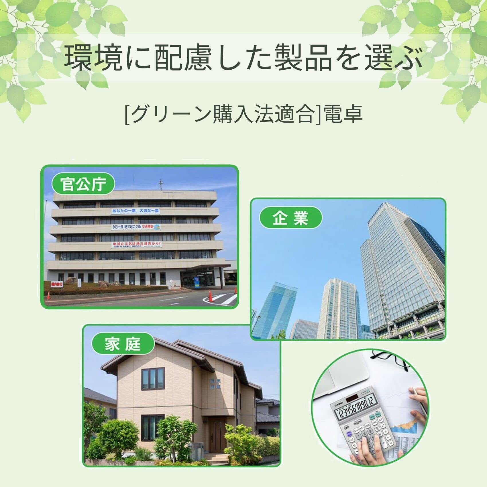 カシオ グリーン購入法適合電卓 10桁 ジャストタイプ JF-100GT-N エコマーク認定