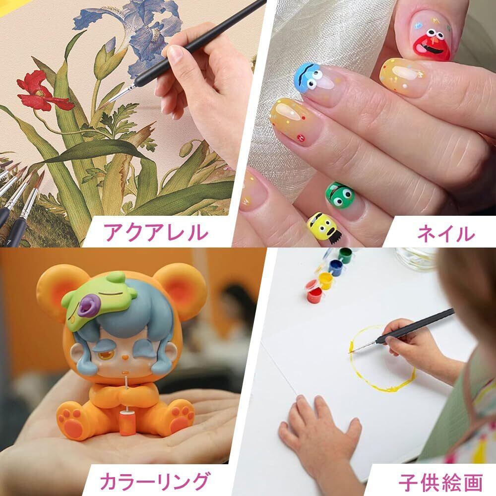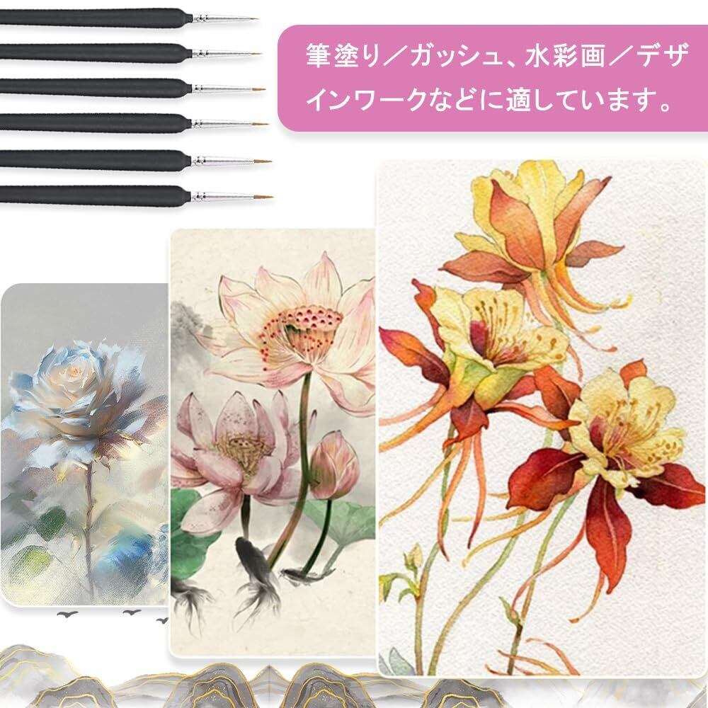 面相筆 勾線筆画筆 アクリル筆 極細面相筆 塗装 油絵筆 絵の筆 極細筆 プラモデル塗装筆 細部 ペイント用 模型用 筆 塗装 セット 柔らかい毛 安全な素材 快適な手触り 吸収性 ウルフヘアー素材 ブラック( 6本セット)