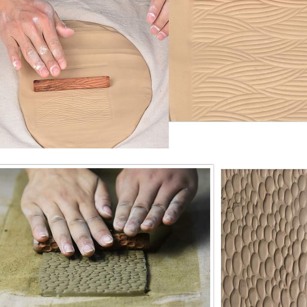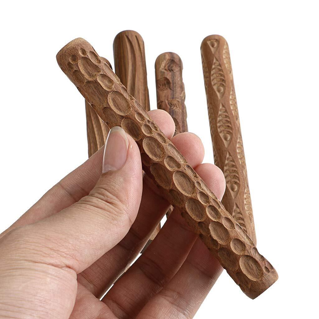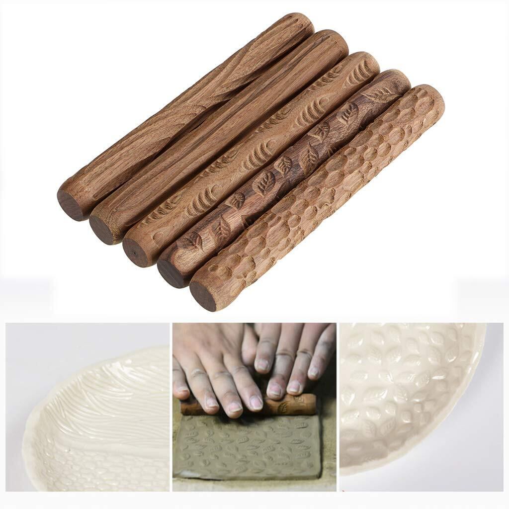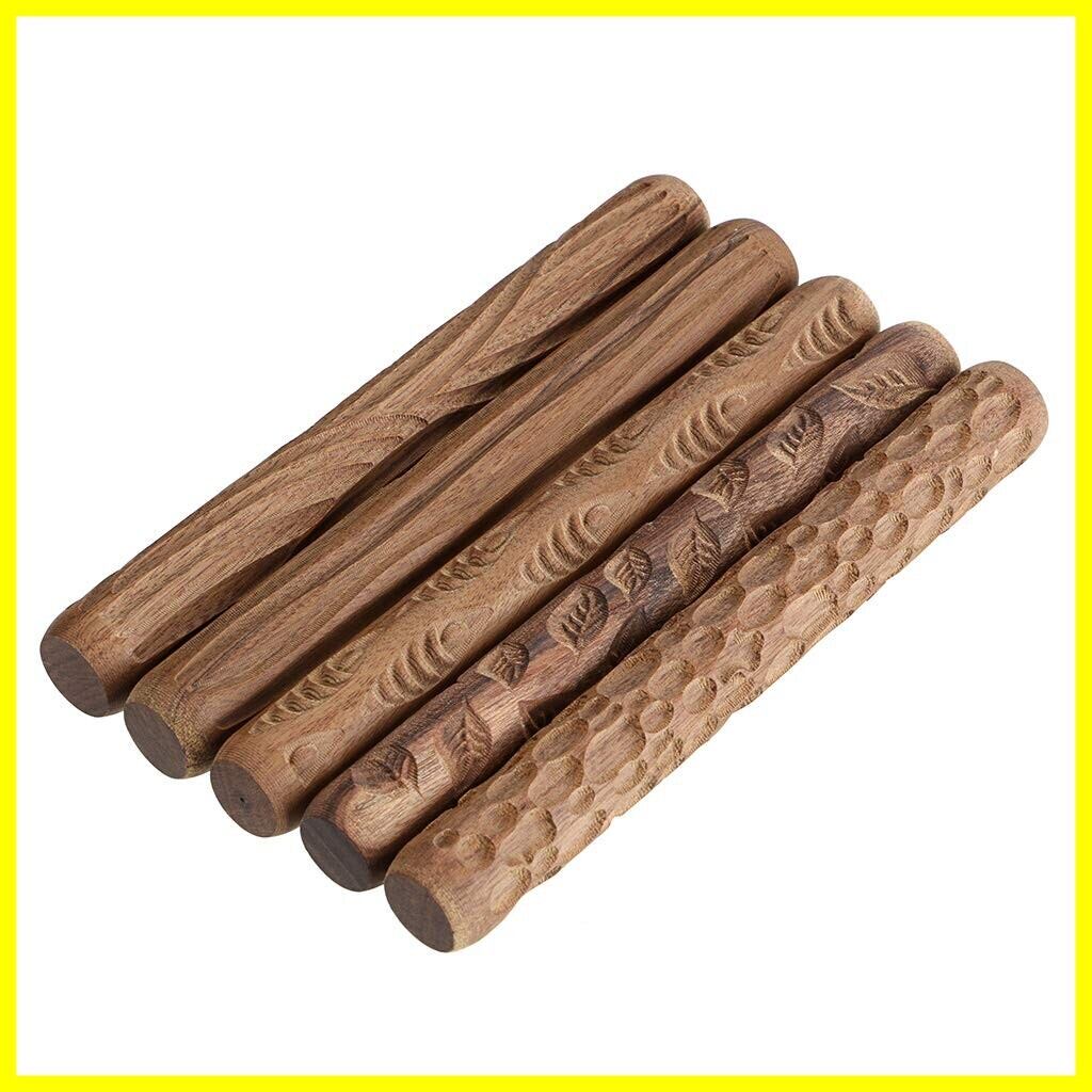 Sumnacon 陶芸 粘土 道具 印花 型 木製 陶芸用品 粘土印花ツール ハンドローラー 違い模様 5本セット