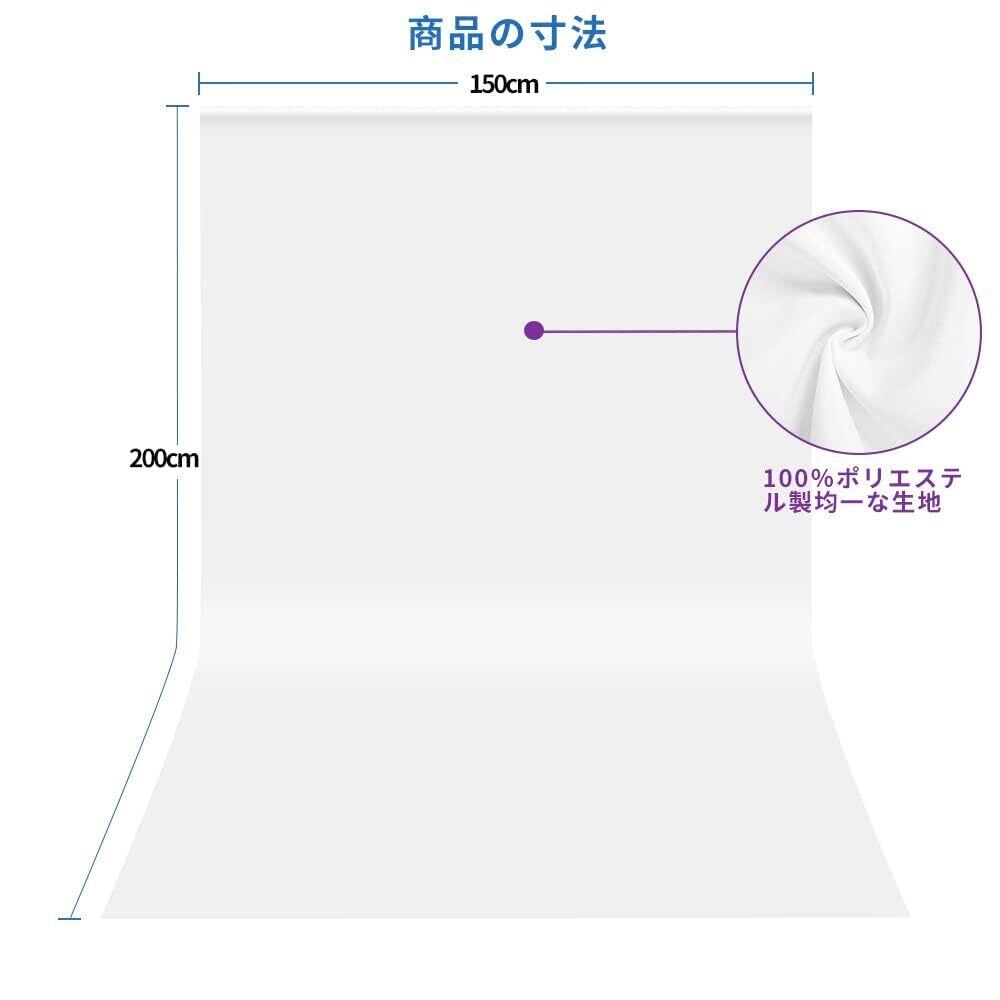 【使用便利な背景布】白い布の幅は約150㎝、縦は約200㎝の大きいサイズのため、背景布は折り畳んでお届けることになり、折り目があります。ですが、スチームアイロンをかけてしわが取れます。 「ご注意:」普通の電気アイロンを使う場合、ポリエステル専用モード(低温)に設定する必要があります。それに、一時停留等はしないでください。スチームアイロンなら、安心にご使用ください。