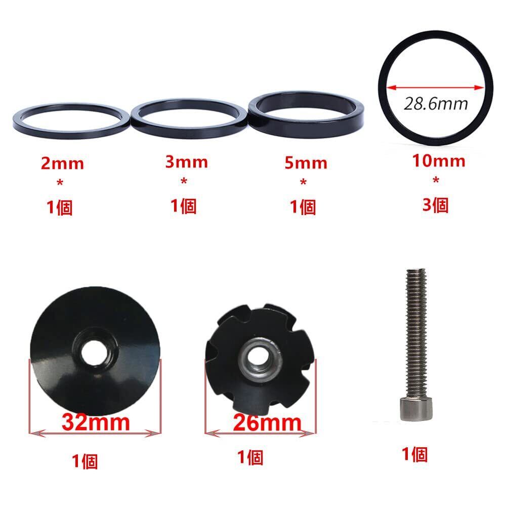 自転車ヘッドセットステムスペーサー 2/3/5/10 mm アルミ合金製 ハンドルバーステムスペーサー 適合口径 28.6mm