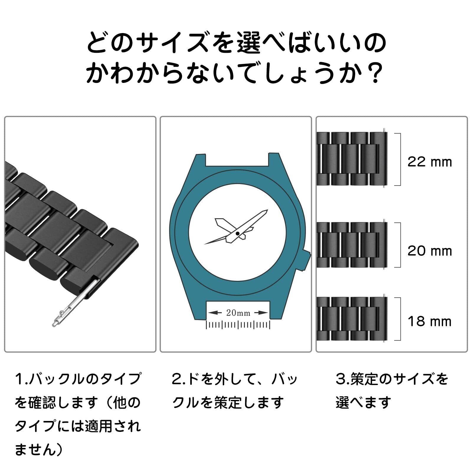 Qosea 時計バンド ベルト18ミリ 20ミリ 22ミリ ステンレス鋼 時計 ベルト 18mm 20mm 22mm スマートウォッチバンド ベルト 腕時計バンド 18mm 20mm 22mm 交換ベルト 金属ベルト メタルベルト 調整工具付き ギフト