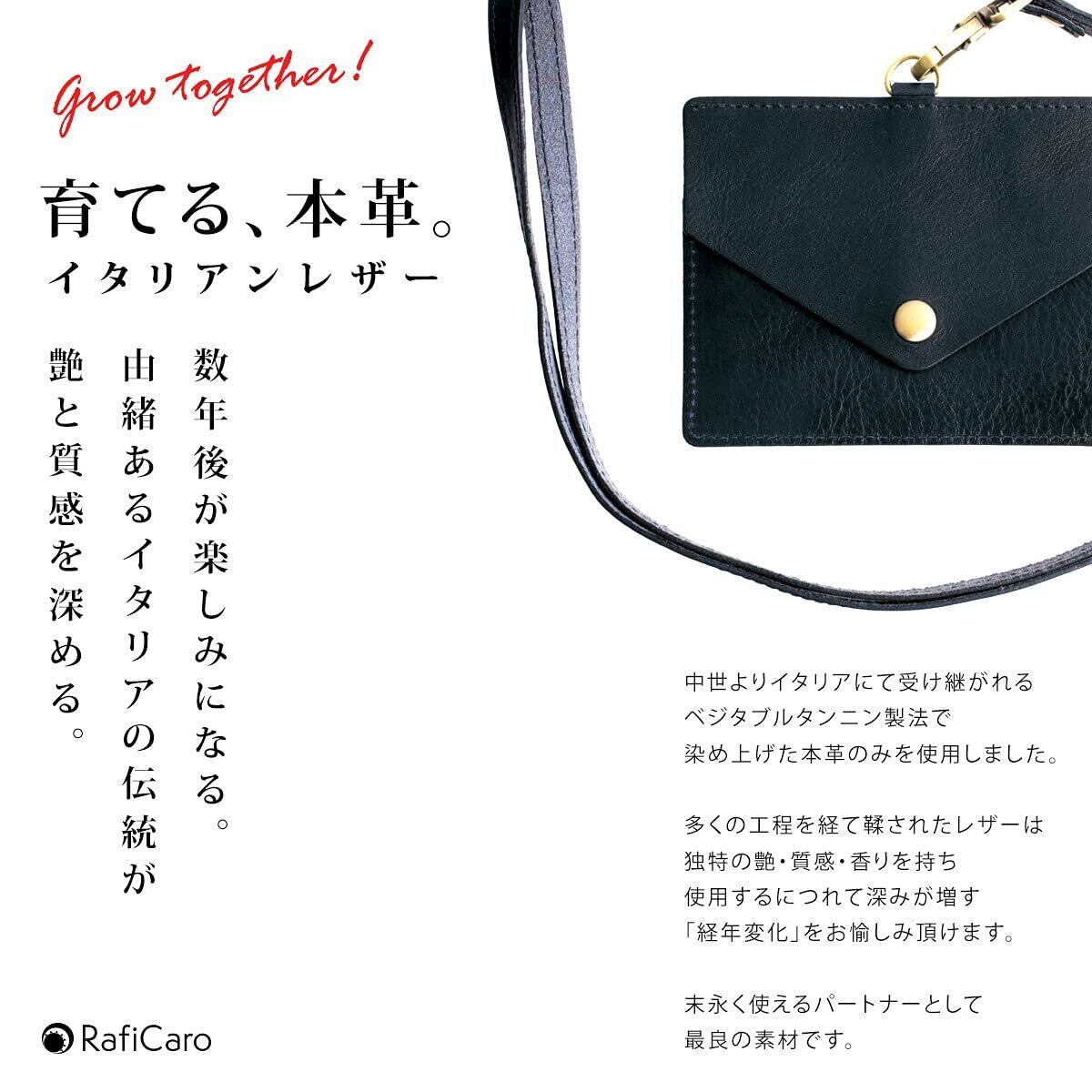 [RafiCaro] パスケース IDカードホルダー Wポケット 定期入れ本革 イタリアンレザー 首掛け ネックストラップ付 idケース 社員証 カードケース メンズ レディース ブラウン