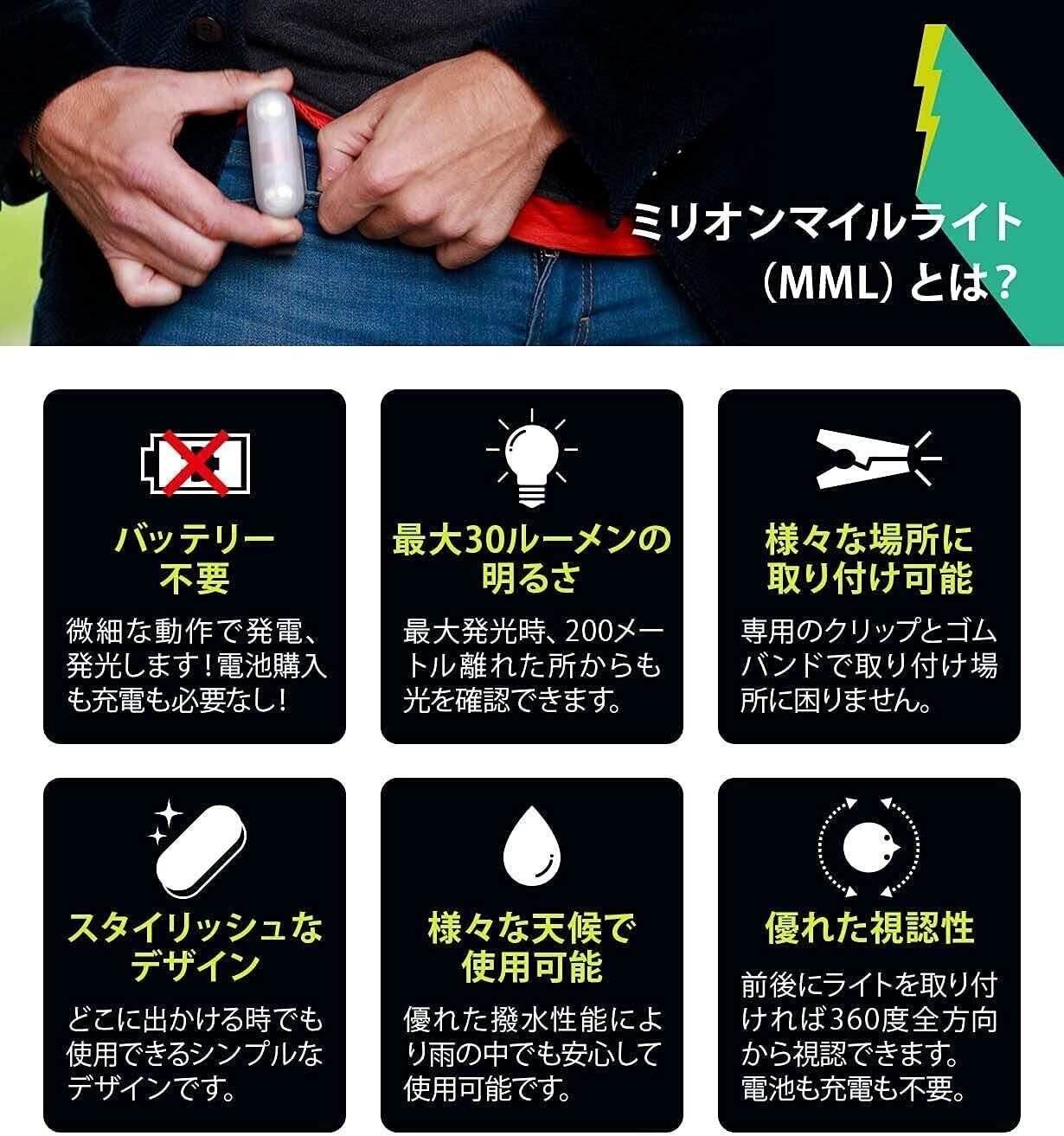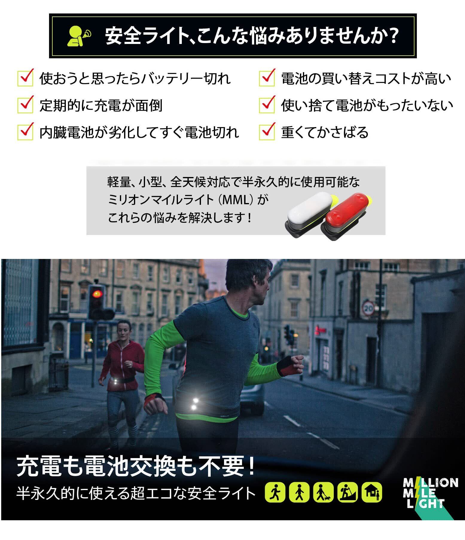 ミリオンマイルライト LED ランニング ウォーキング 充電・電池不要 ジョギング 夜間 ランニングライト