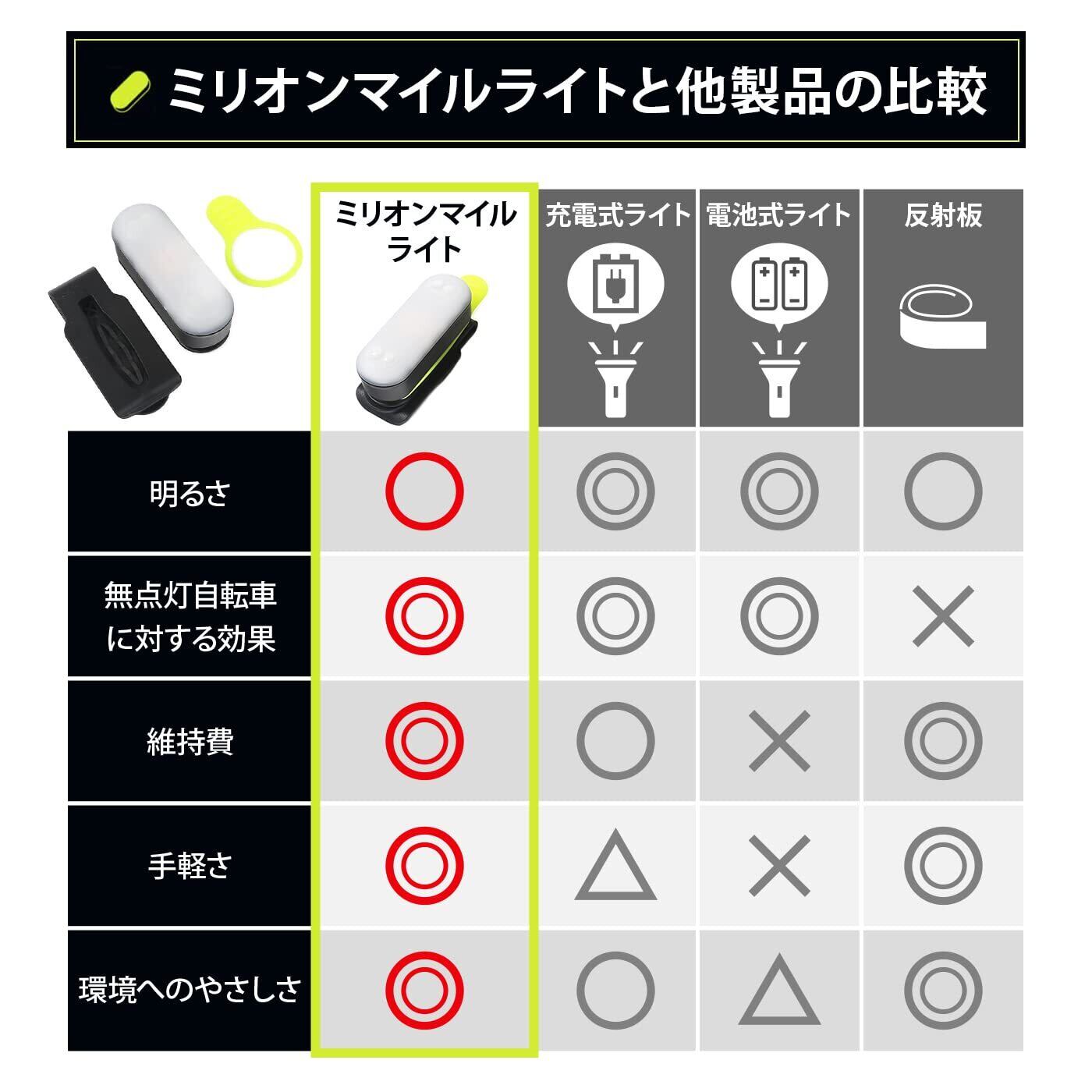 ◆最大30ルーメン・小型で携帯性抜群・優れた撥水性・軽量性を兼ねそろえた性能の高さ!(※ミリオンマイルライトは足元を照らすライトではなく、認知してもらう"安全ライト"です)