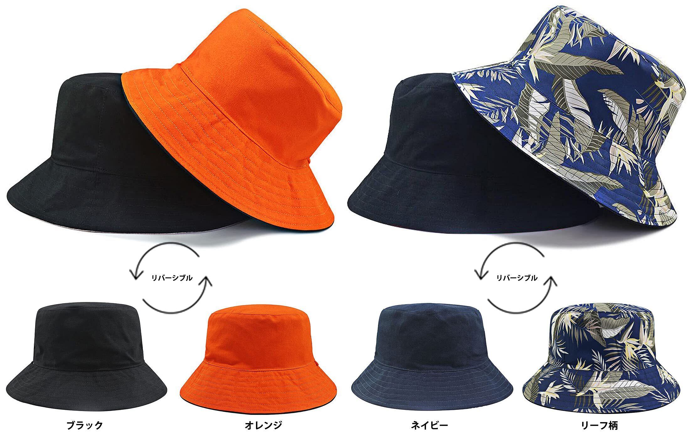 どちらを主役にするかはその日の気分!リバーシブルバケットハットです。メンズ、レディース問わないユニセックスデザインなので、ペアやグループでのご使用もできます。