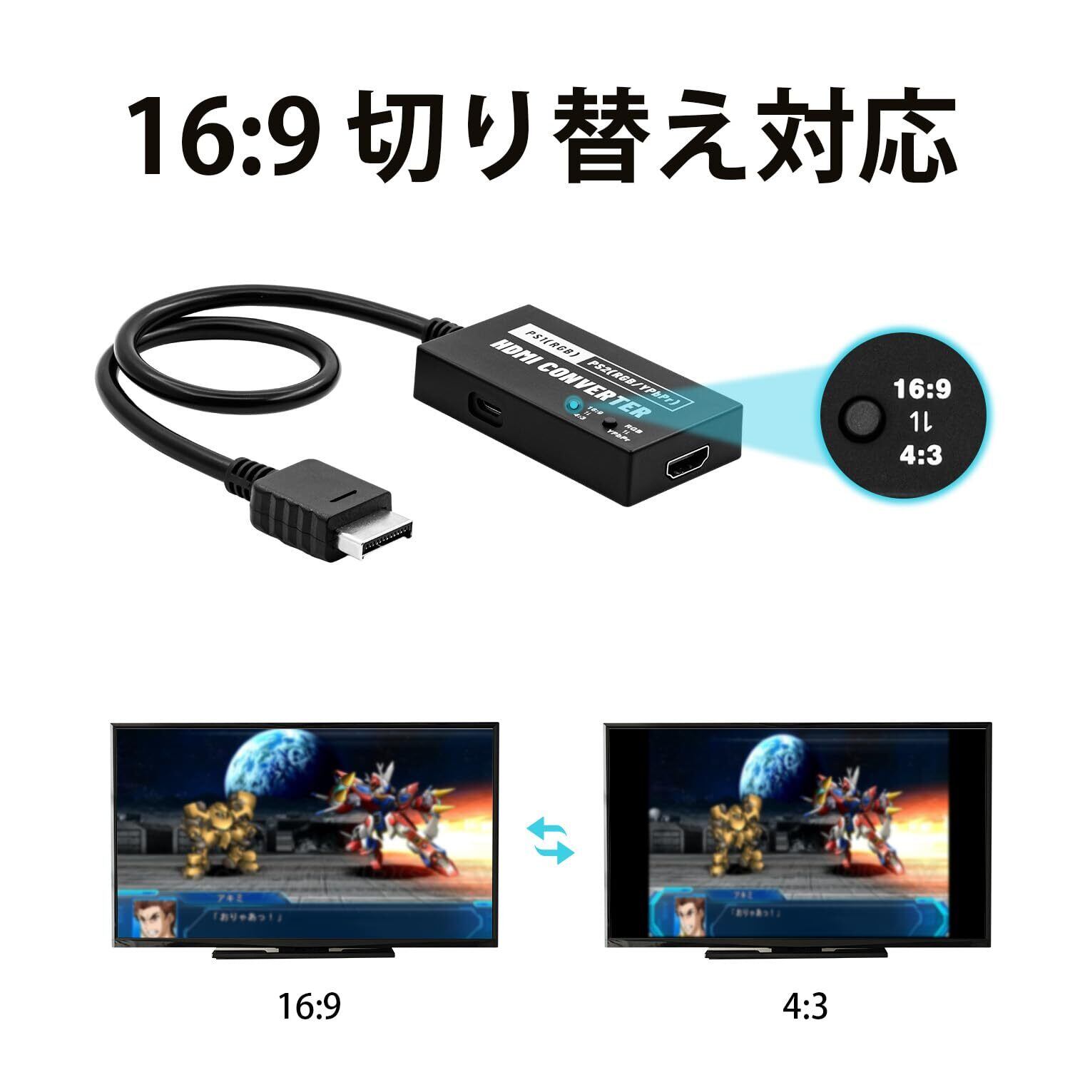 Mcbazel 新型 PS1/PS2専用 RGB/YPbPr to HDMI 変換コンバーター 720p 4:3から16:9変換可能 HDMI変換 PS2コンバーター-PS1/PS2対応-ブラック