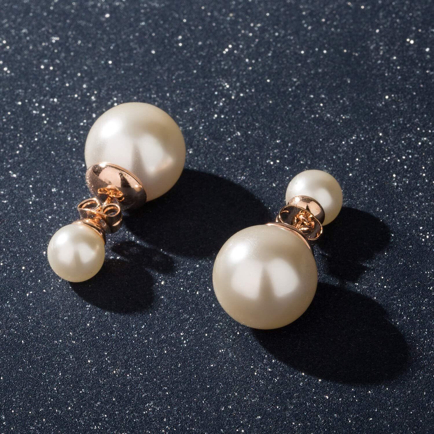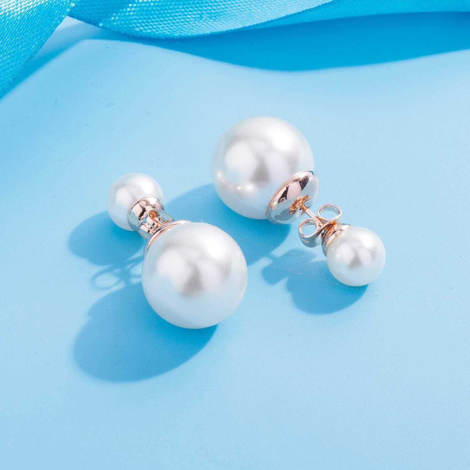 CHLOEOS ダブル パール ピアス スタッドピアス 人気 レディース 両面 淡水真珠 K18金 プレゼント 結婚式 誕生日 記念日 母の日ギフト (ホワイト ダブル パール)