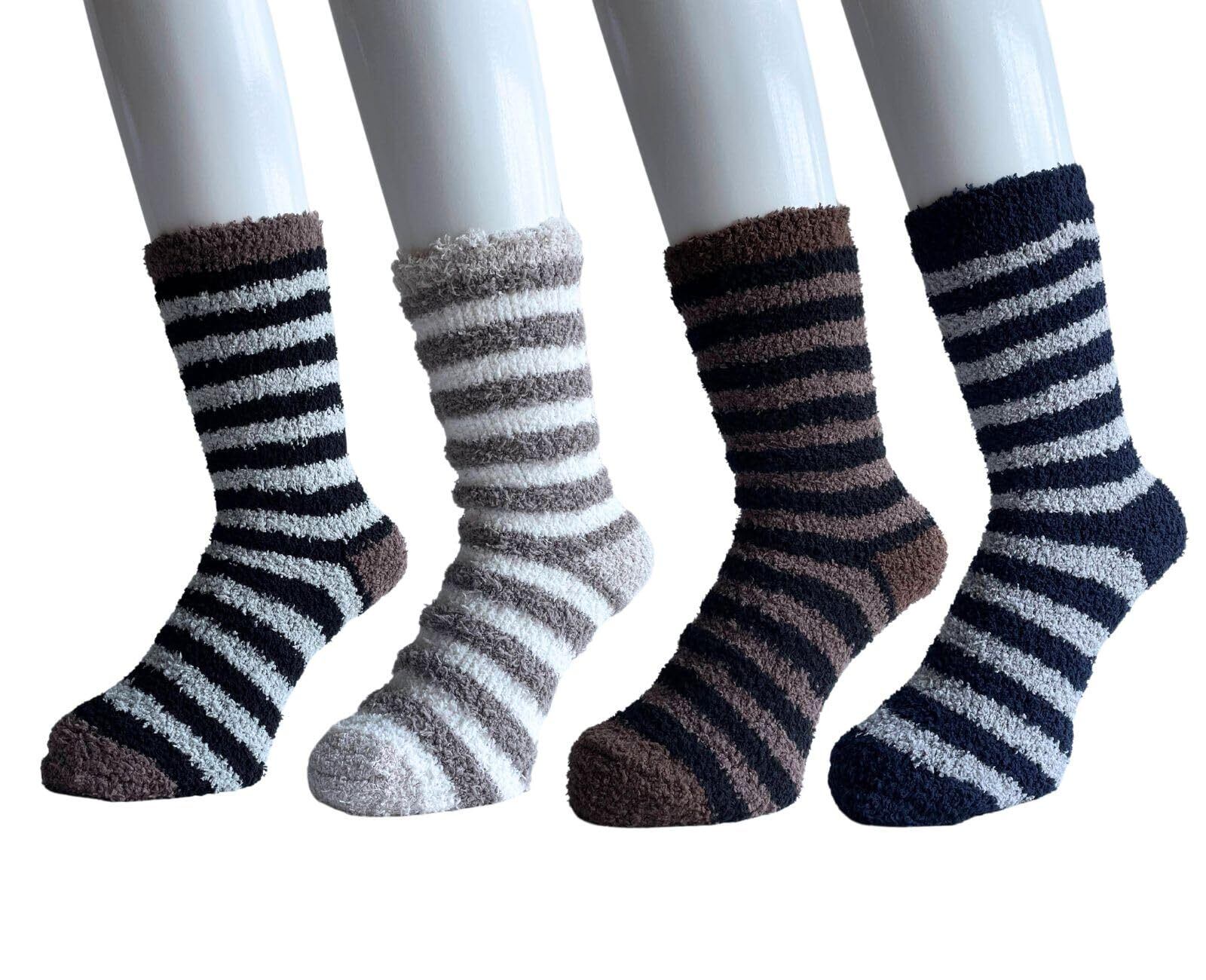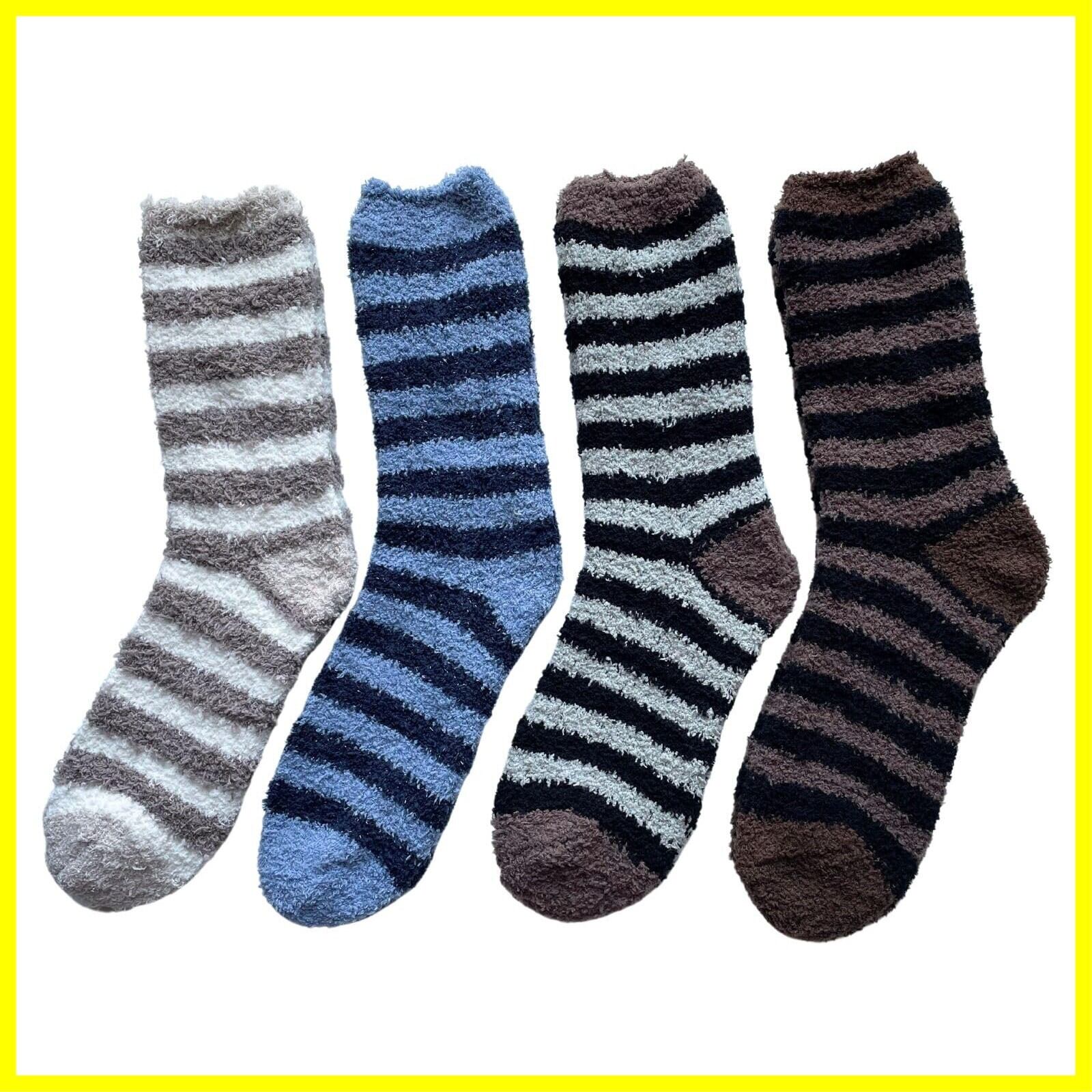[モードセレクト] ふわふわソックス メンズ 4足組 あったか 厚手 冬 靴下 メンズ 厚手 冬 もこもこ 柔らかいルームソックス ボーダー4足セット(色お任せ) D24