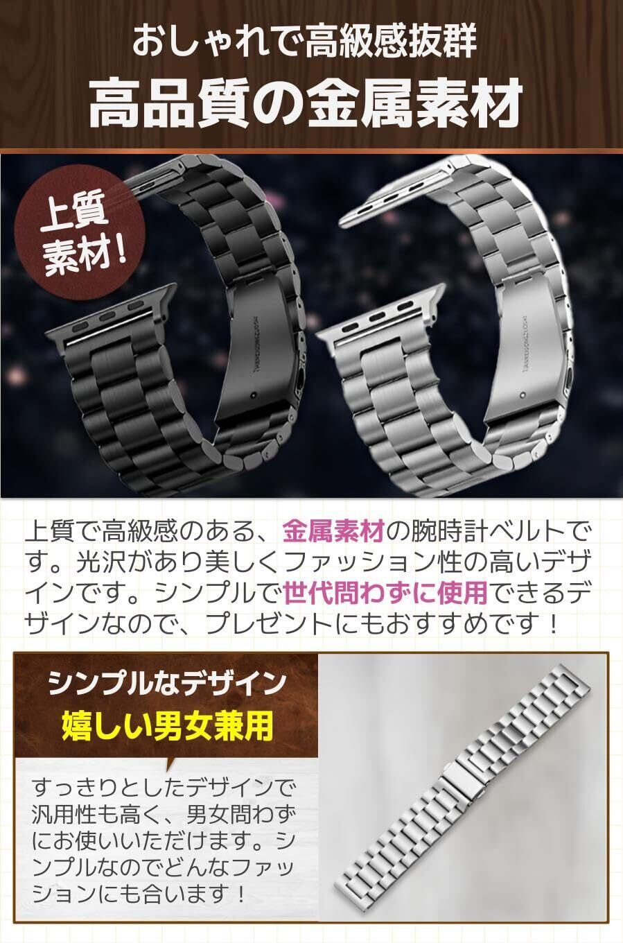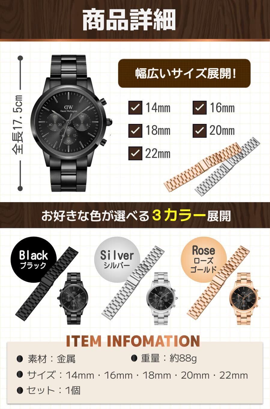 【商品特徴】①男女兼用のデザイン:シンプルなデザインで男女問わず使用可能/②幅広い対応サイズ:お使いの時計に合うサイズが見つかる/③高級感のある素材:光沢のある金属素材で高級感を演出!/④豊富なカラー展開:お洋服やお好みに合わせて選べる