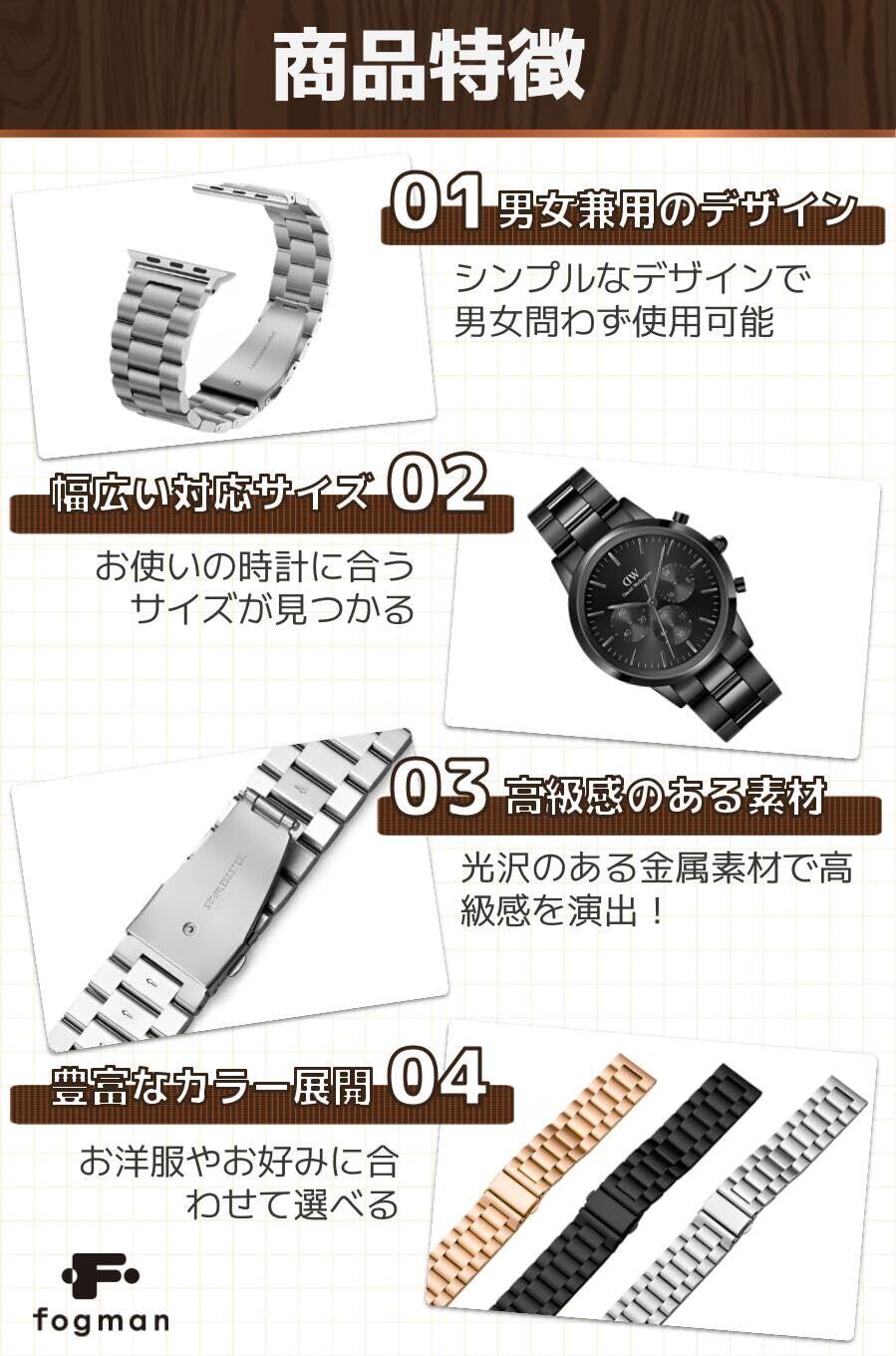 [fogman] 時計ベルト 時計バンド 交換 おしゃれ かわいい ステンレス レディース メンズ 金属