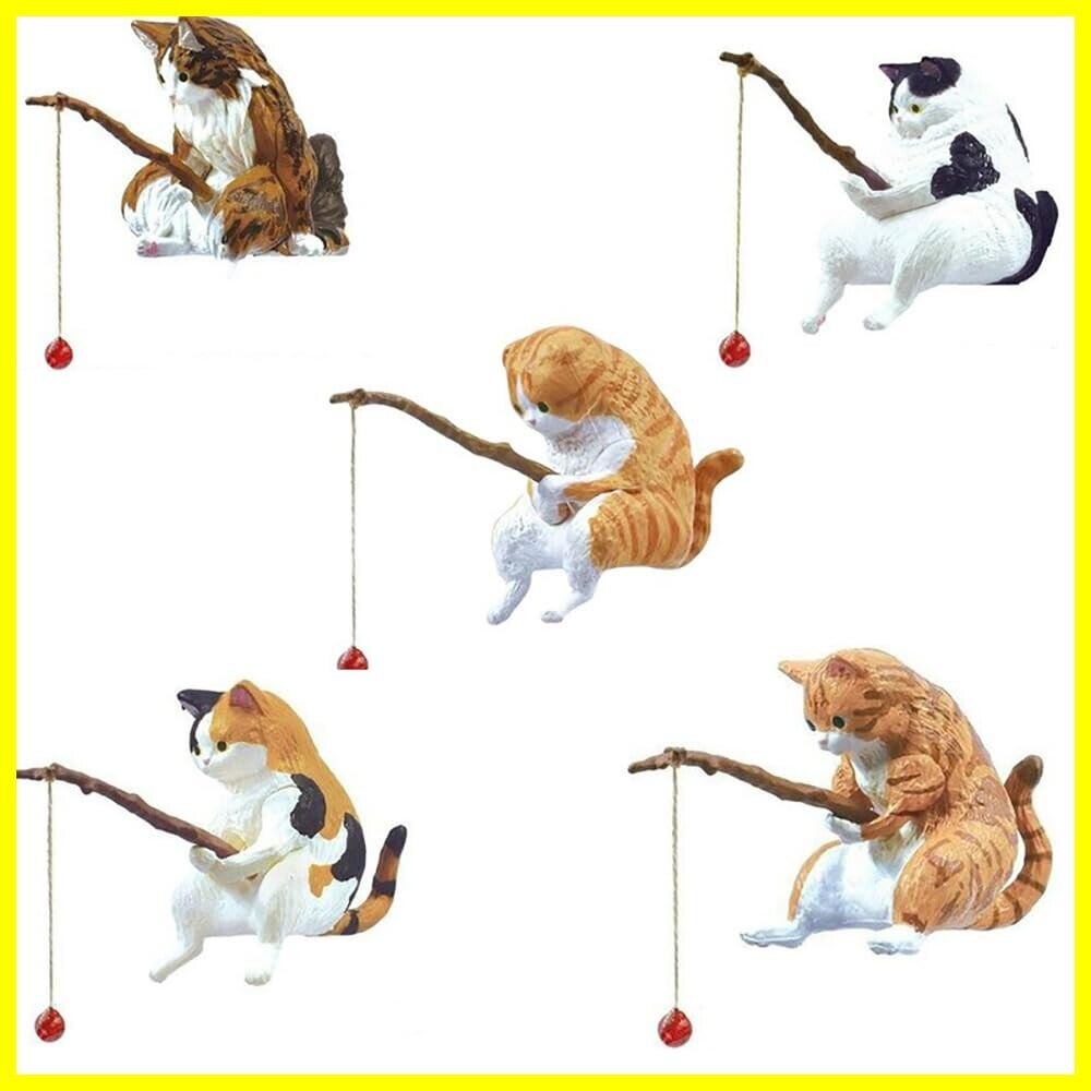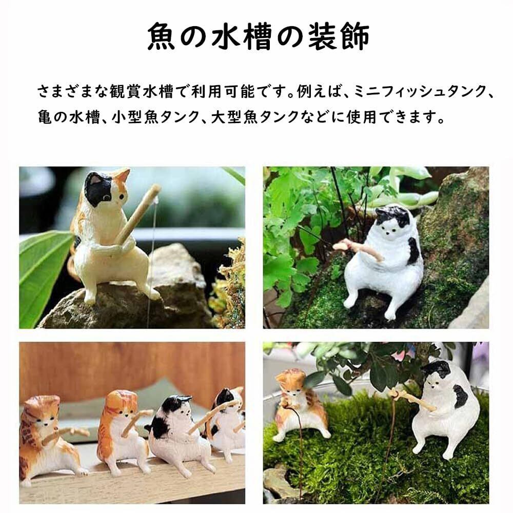 アクアリウム 水槽 5点セット 釣り猫 オーナメント 猫 水槽造景 オーナメント 水族館の装飾 インテリア ミニ猫像 雑貨 樹脂 水槽アクセサリー