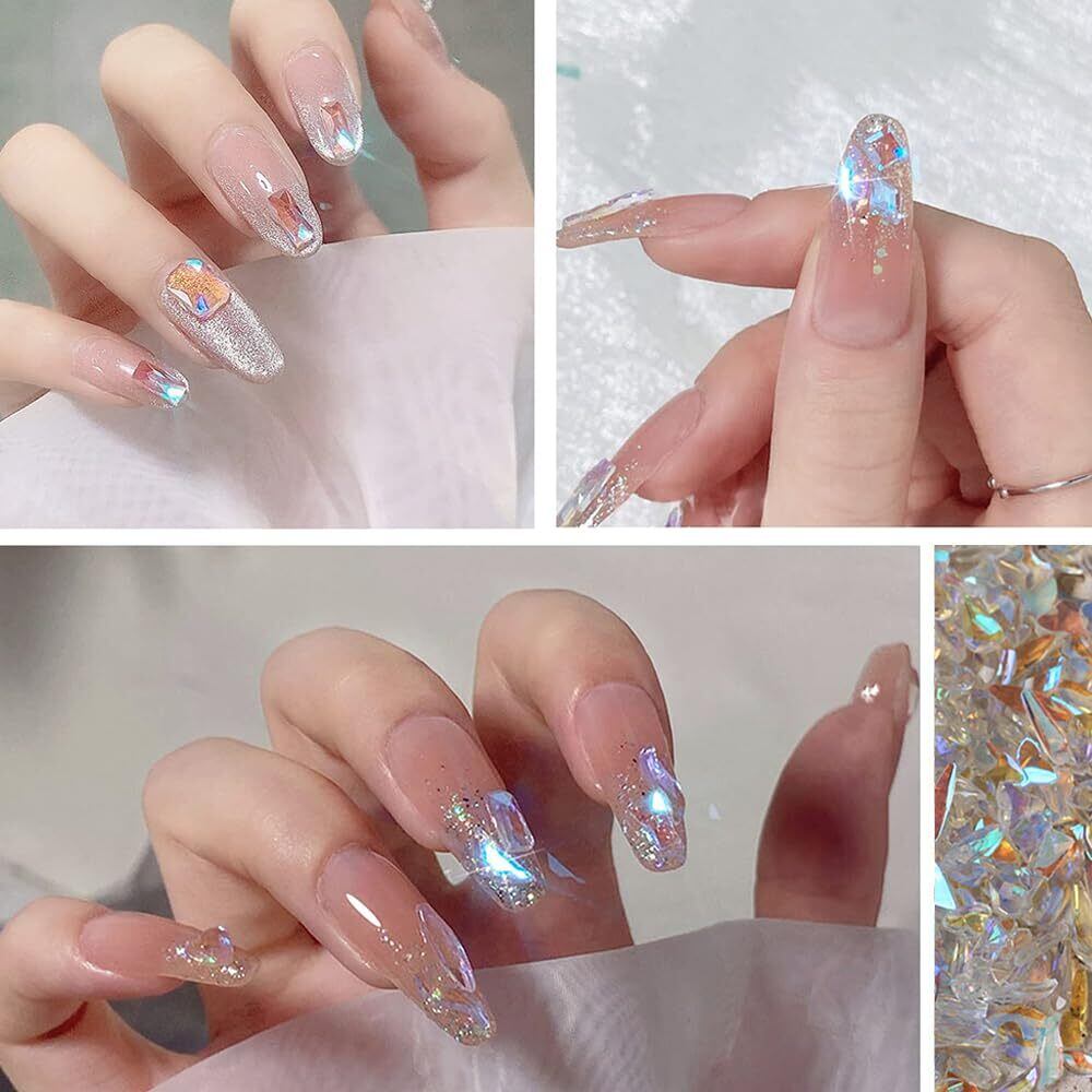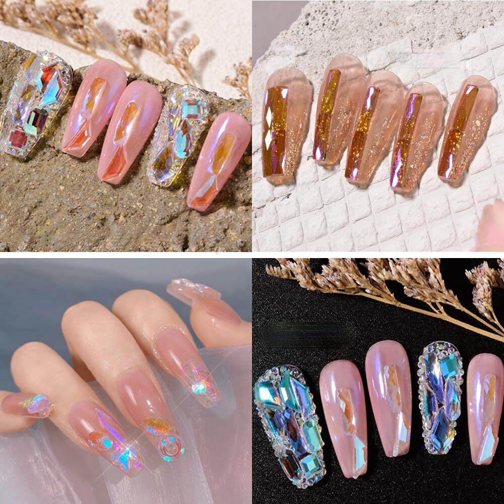 LIKENNY ネイルアートストーン 約200個セット ネイルパーツ クリア オーロラ 4色 3D立体カラーラインストーンキラキラ DIY ネイル デコ用 大容量セット