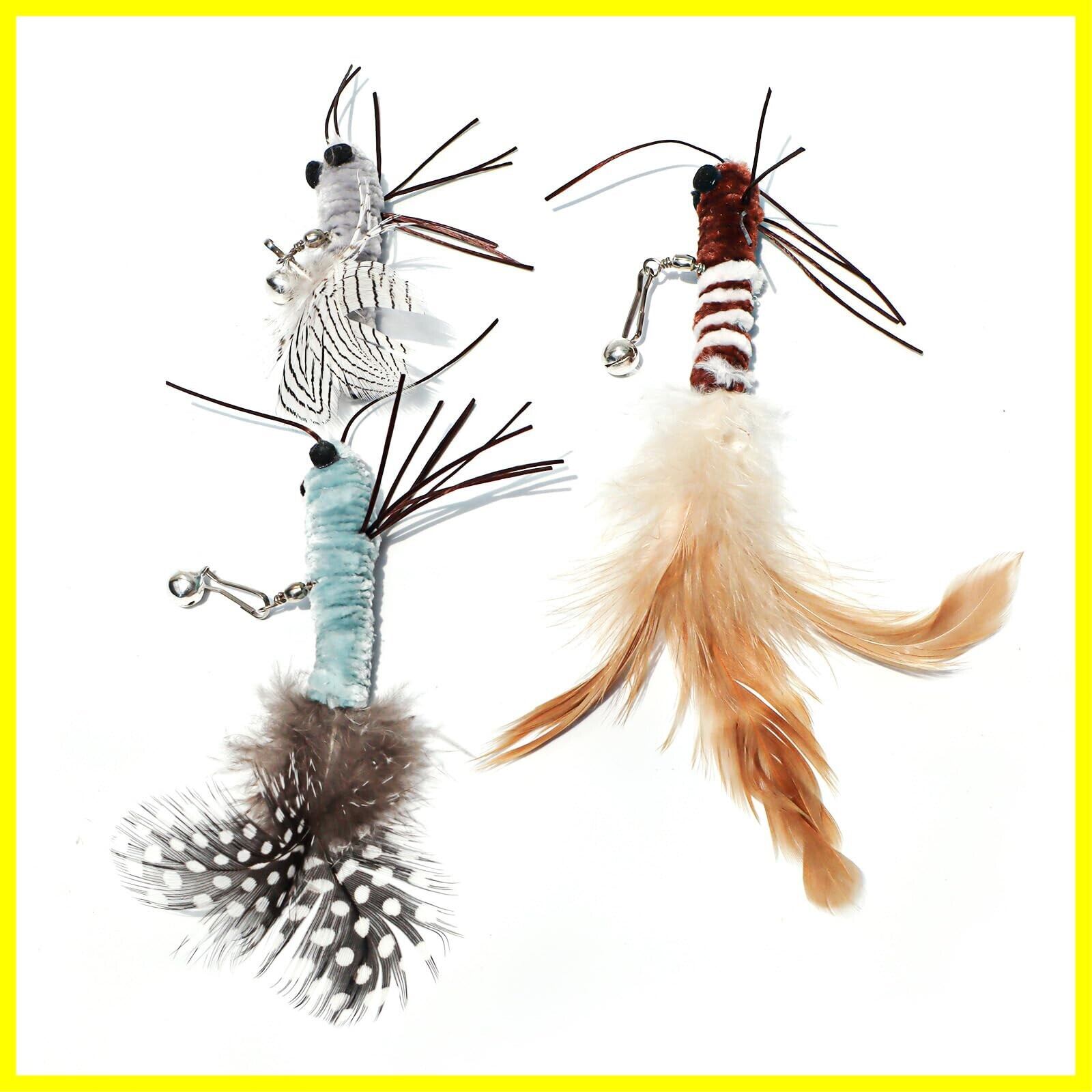 3 of Ni 猫じゃらし 天然フェザーを使用した 3个交換用猫おもちゃ おもちゃ 羽根 ねこ玩具 昆虫 人気 鈴付き&音刺激 運動不足解消 ストレス解消(ロブスター2号です)