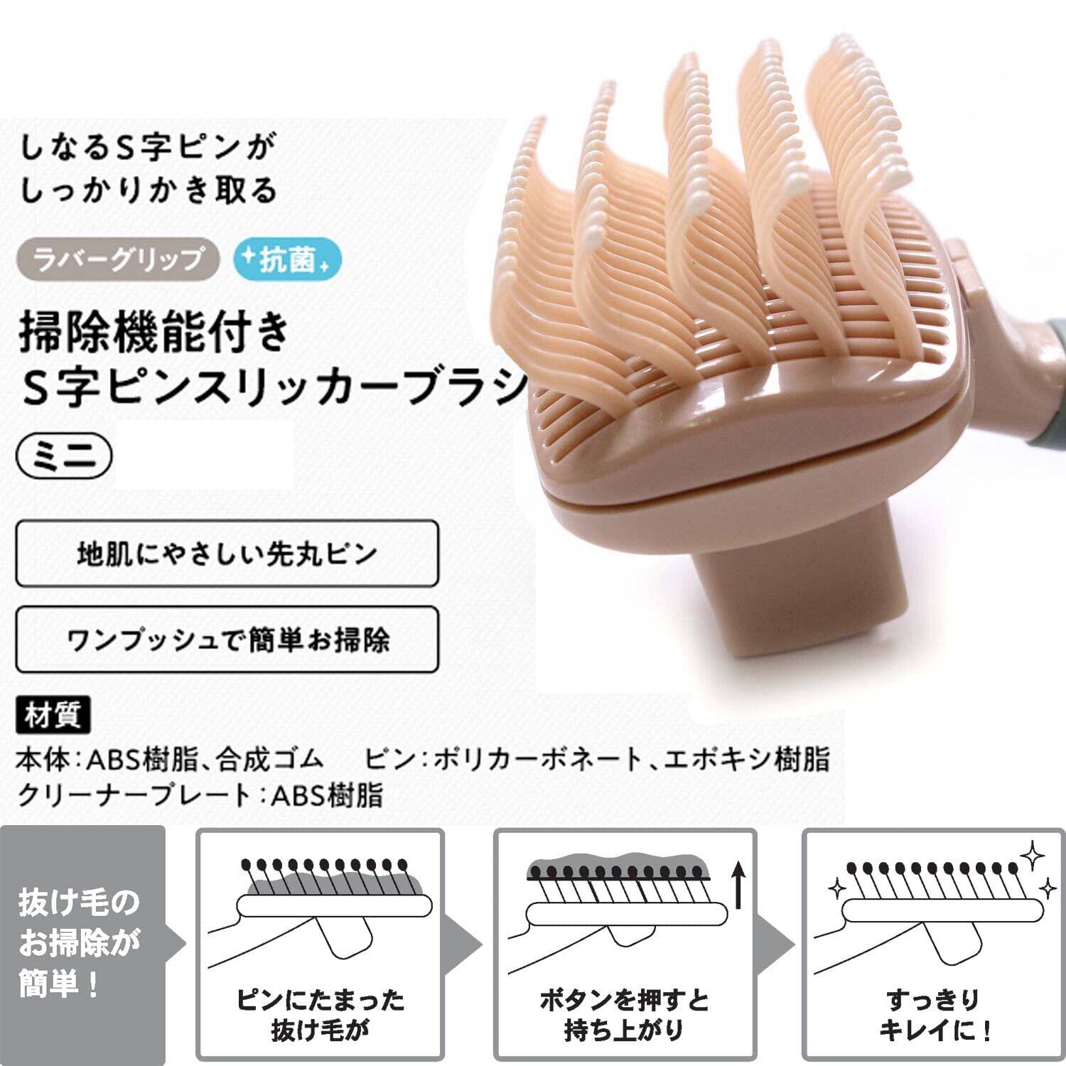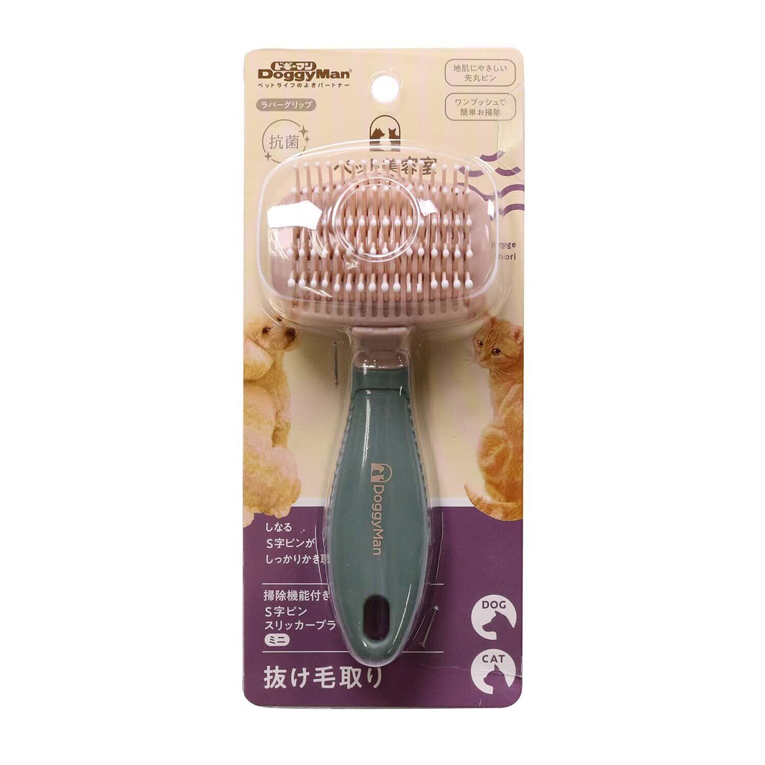 ドギーマン ペット美容室 掃除機能付きS字ピンスリッカーブラシ ミニ 犬、猫
