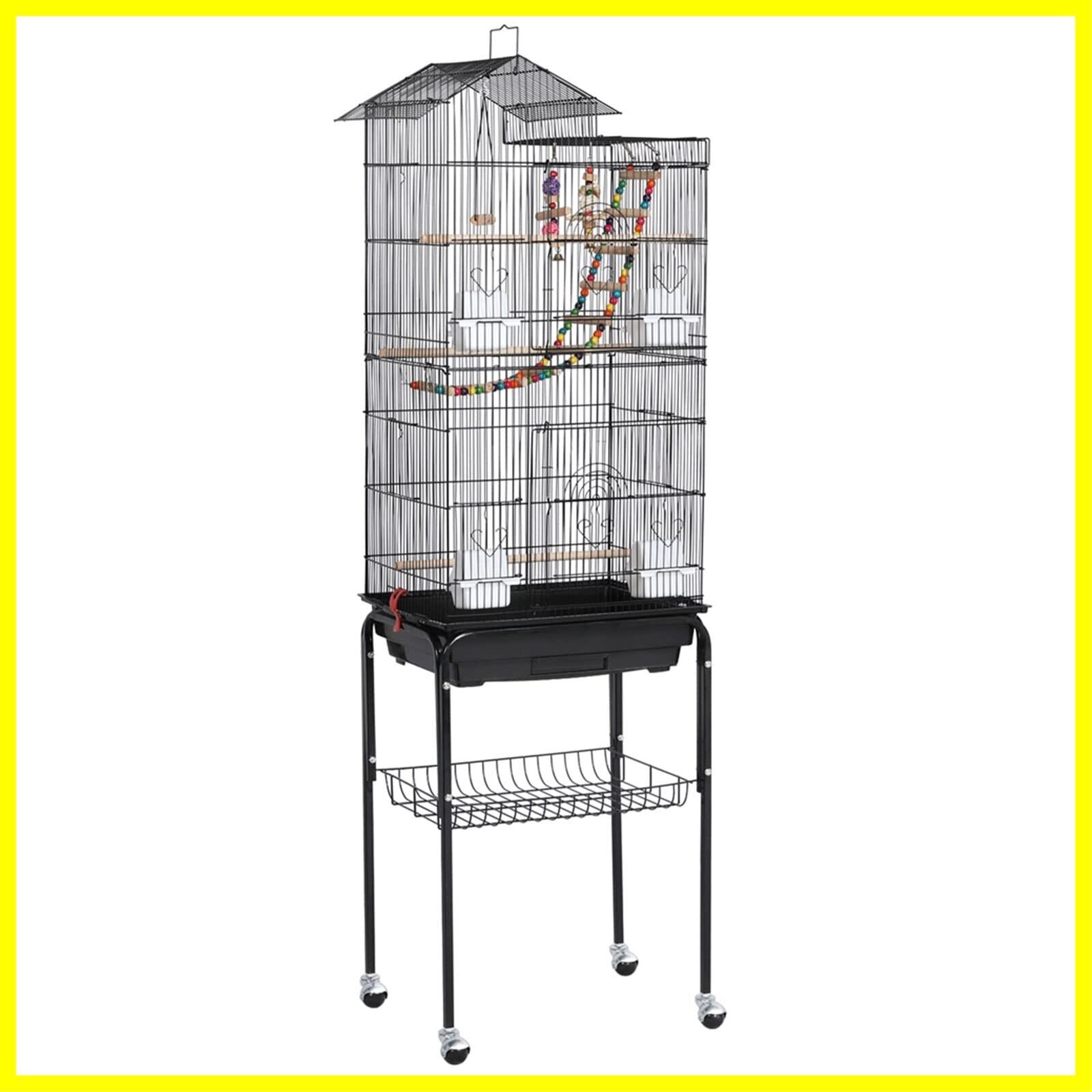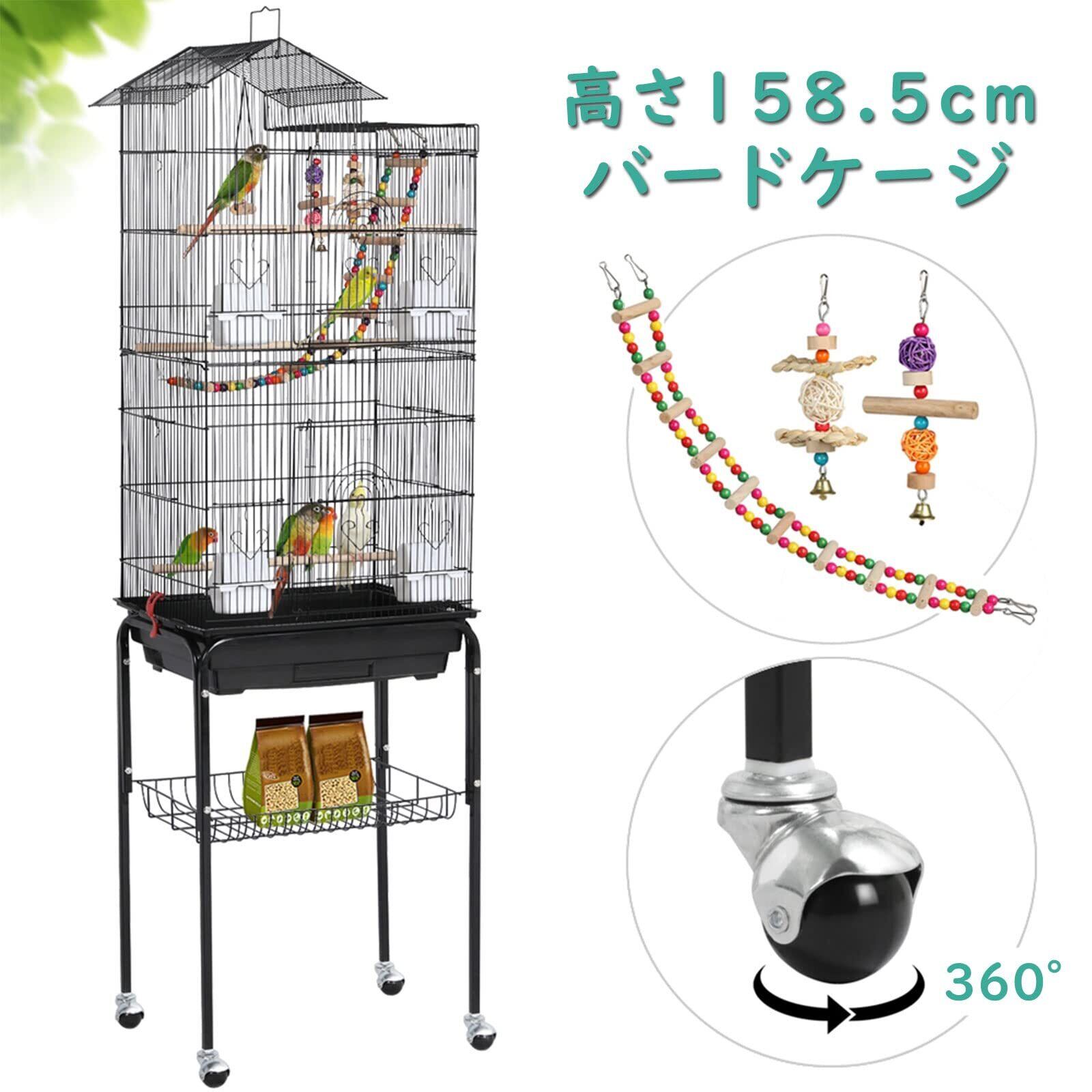 Yaheetech 鳥かご 鳥ケージ スタンド付き 46x35.5x158.5cm 大型 高強度 豪華cage 大きい 鳥小屋 bird cage ブランコ付き フルハウス ペット用品 おもちゃ付き セキセイインコ インコ オウム オカメ コガネメキシコ コザクラ マメルリハ ウロコ アキクサ ブラック