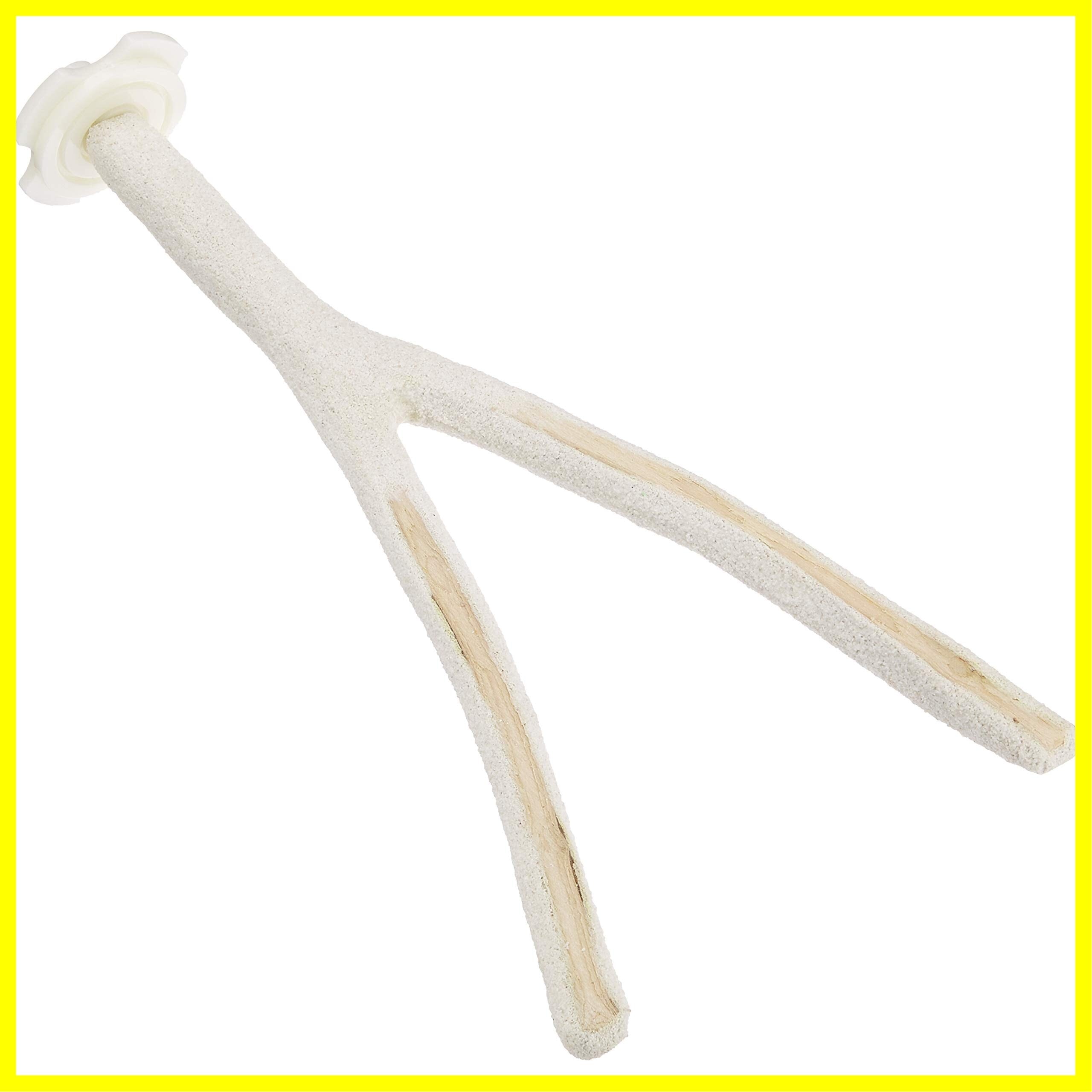 ワイヤーパネル取り付け用。 天然の二股に分かれた枝の周りに砂を まとわせた止まり木です。 細かな砂目が爪先の磨耗を進めて自然に整えます。 小鳥やフクロモモンガの足場として。