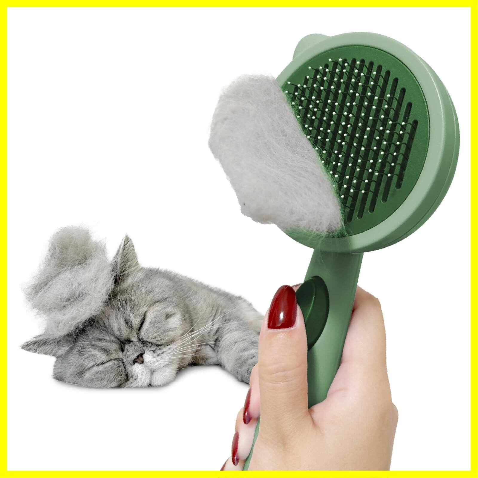 FelineBees 猫 犬 ブラシ 皮膚に優しい 痛くない 長毛 短毛 ヒーリングブラシ スリッカーブラシ くし ペット用 ペットブラシ 毛取り ブラッシング フィーラインビーズ(モスグリーン)