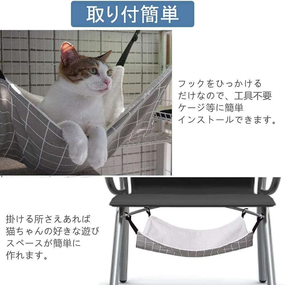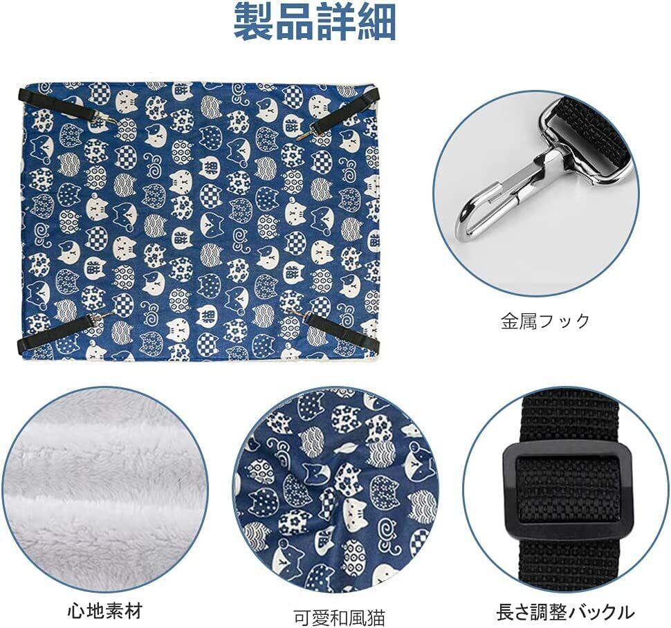 猫 ハンモックはんもっくキャット 椅子 ケージ用 大きい 耐荷重10KG サイズ調整可能 58cm x 48cm、キャット 椅子 ケージ用 大きい 耐荷重6KG サイズ調整可能 48cm x 38cm ペット 遊び場 通気性 金具丈夫 冬夏両用長さ調節可能 両面使用 (ブルー, M)