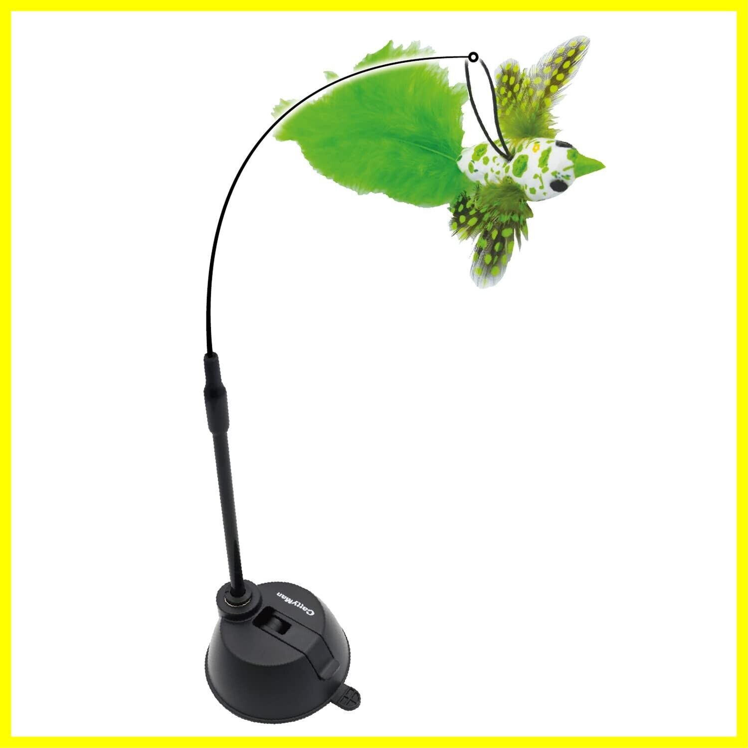 ●フローリング床にも取り付け可能な強力吸盤と長いワイヤー猫じゃらしがセットになったおもちゃ