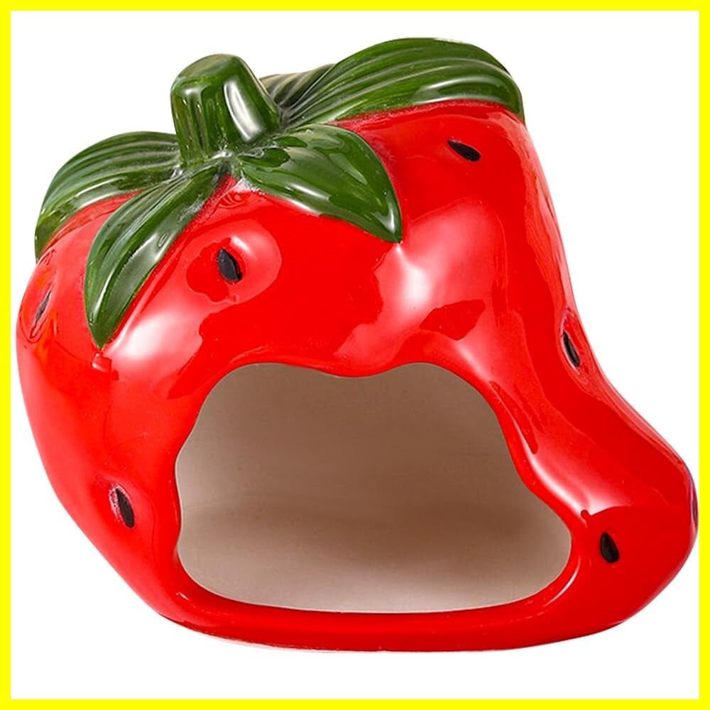 【 ひんやり冷たい陶器のハムスターハウス 】 春夏の暑いシーズンに大活躍の、かわいいイチゴ型のペットベッドハウスです癒されるおしゃれなデザインのハウスを、夏場の涼み処にペットが顔を出す姿がたまらなくかわいい
