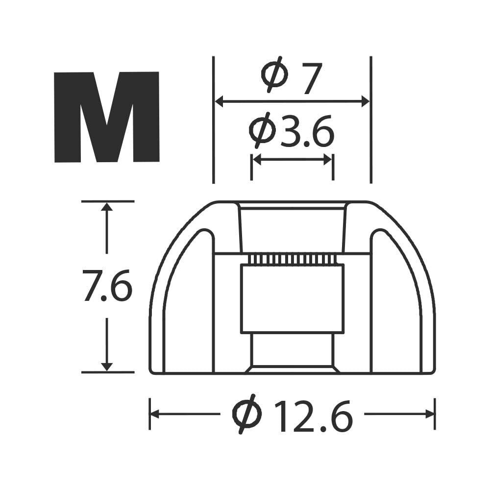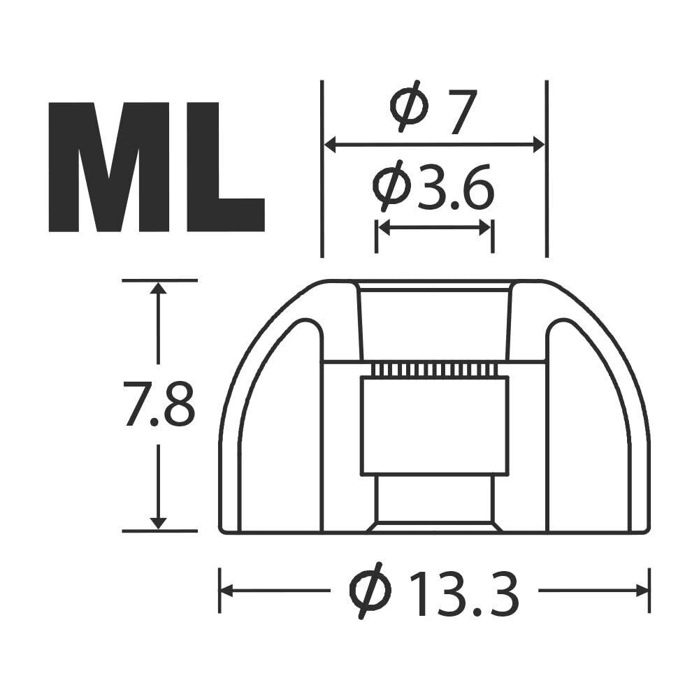 【より多くの方にベストフィッティングさせる6サイズ展開】SednaEarfit XELASTEC IIは、一般サイズのStandardタイプを採用しています。中間サイズを含めたSS/S/MS/M/ML/Lの計6サイズで、より多くの方にフィッティングしやすくしています。また、パッケージング構成は、単品サイズ2ペアと、非常に好評な中間サイズを含めた近接3サイズ(例:S/MS/M)を1ペアずつパッケージングした3ペアの2種類を採用。これにより、左右で耳道の大きさが異なるなどの際、微妙な調整をしやすくなります。さらに最もユーザーニーズが高かった近隣3サイズのMサイズクラスは、MとMSそれぞれを中心にした2タイプのセット商品をご用意し、より選択しやすいようにしました。